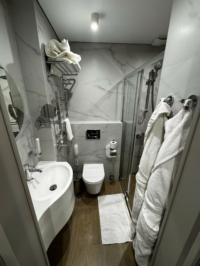 В качестве недостатка укажу плохое качество гелей для душа и шампуней в номере Стандарт.