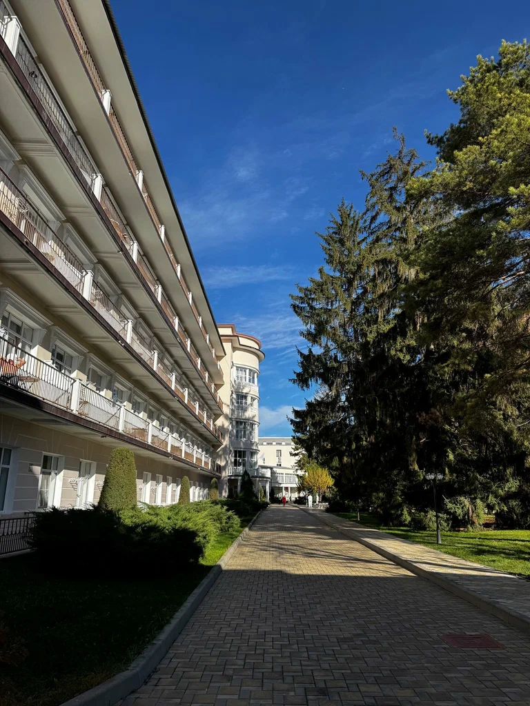 А главное, что меня покорило — это расположение. Из санатория прямой выход в парк, буквально в двух шагах от нижней станции фуникулёра. Там тихо, воздух потрясающий, вокруг красивые исторические здания и природа. Захотелось городской суеты — до центра Кисловодска минут десять спокойным шагом либо по парку, либо через улицы. Санаторий мне очень понравился, оставил самые тёплые впечатления, обязательно вернусь ещё.
