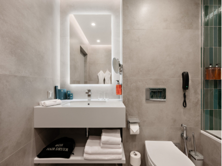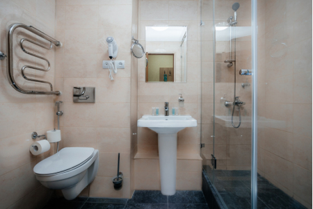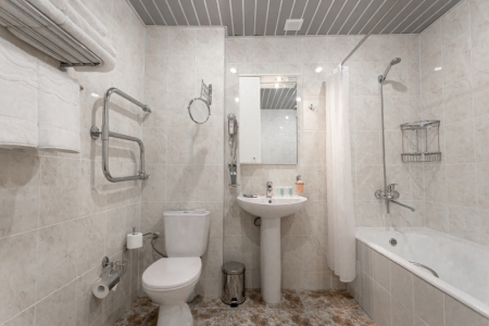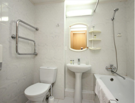 Санузел: ванная комната (ванна, раковина, унитаз), банные принадлежности, гигиенические средства, косметические средства.