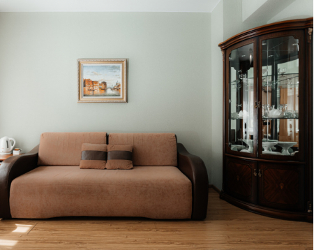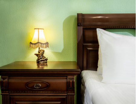 Мебель: двуспальная кровать или две односпальные кровати, зеркало, стулья, вешалки, журнальный столик, шкаф для одежды.