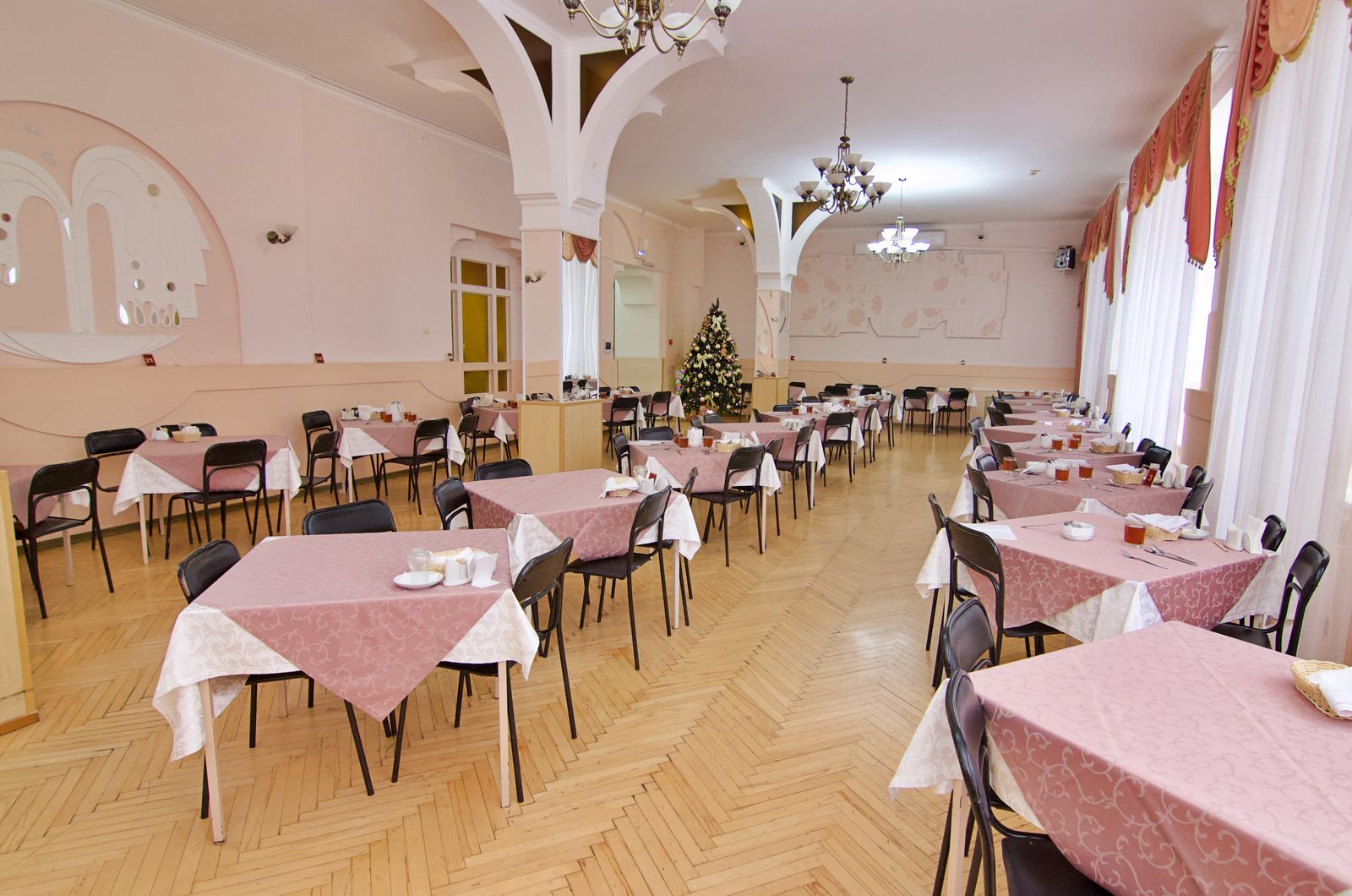 Питание трёхразовое, диетическое — рацион формируется с учётом врачебных назначений. В меню много свежей зелени, овощей, фруктов, качественные продукты. Гости отмечают сытные порции, домашний вкус без изысков — супы, вторые блюда, гарниры, выпечка, десерты. При хронических заболеваниях ЖКТ или нарушениях обмена веществ диетолог составляет индивидуальный стол.