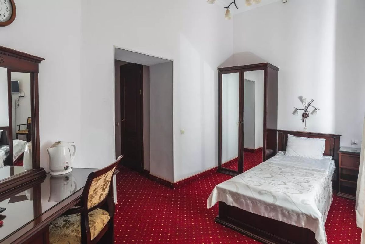Оборудование: сейф, телевизор, телефон, холодильник, чайный набор посуды, электрочайник: минеральная вода.