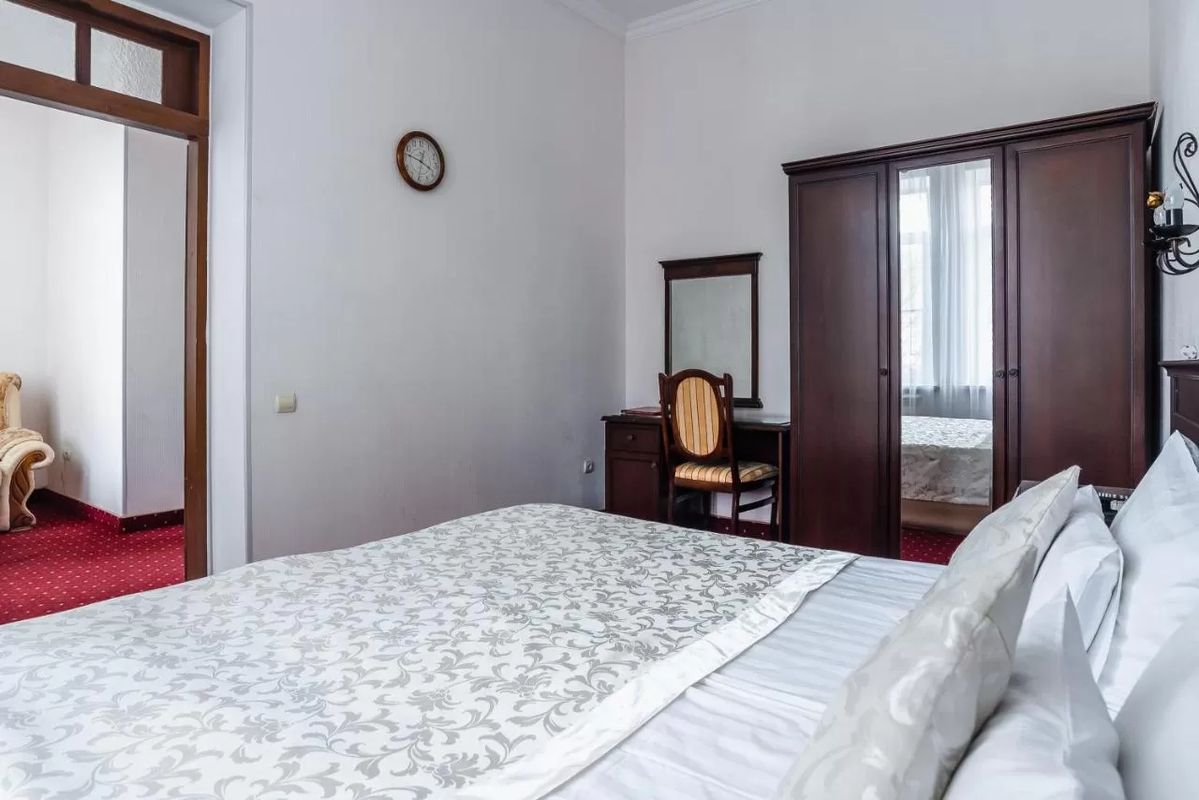Размещение предлагается в двух основных зданиях (А или В) или в отдельно расположенном коттедже, именуемом «Дворянское гнездо». В основных корпусах представлено 24 комфортабельных номера. К ним относятся стандартные (одно- и двухместные), а также номера улучшенной планировки «Студио» и различные варианты люкс-номеров (Мини-люкс, Де Люкс, Люкс).