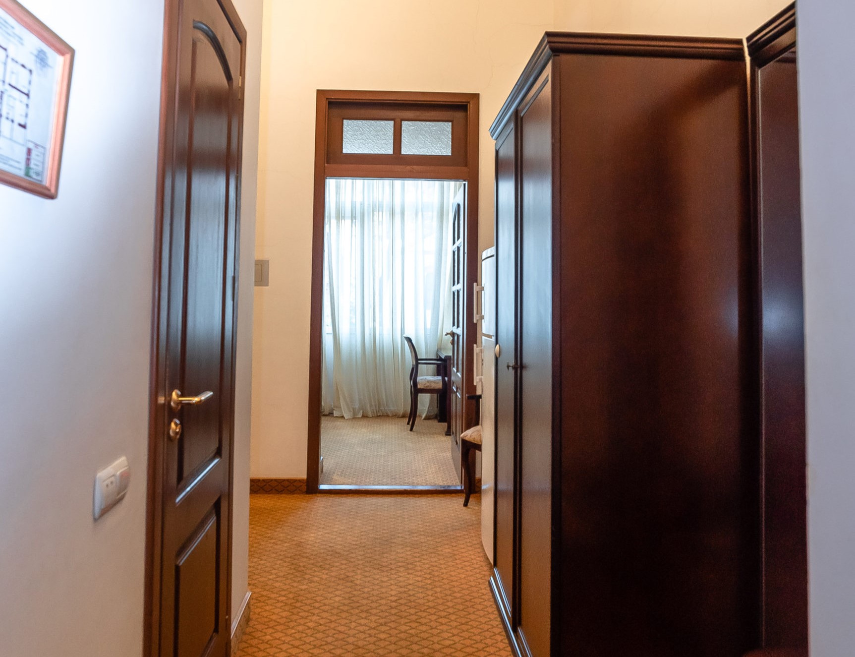 Оборудование: сейф, телевизор, телефон, холодильник, чайный набор посуды, электрочайник: минеральная вода.