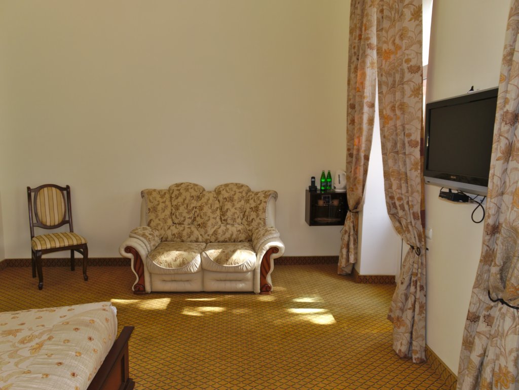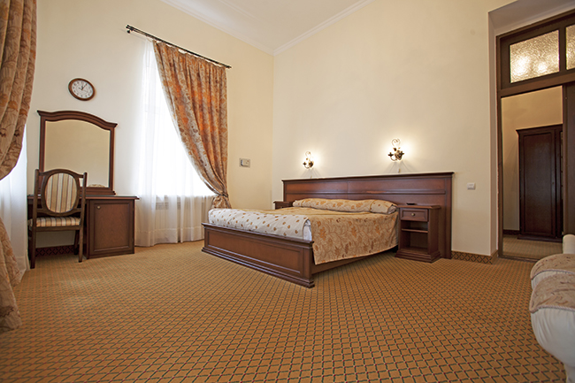 Размещение предлагается в двух основных зданиях (А или В) или в отдельно расположенном коттедже, именуемом «Дворянское гнездо». В основных корпусах представлено 24 комфортабельных номера. К ним относятся стандартные (одно- и двухместные), а также номера улучшенной планировки «Студио» и различные варианты люкс-номеров (Мини-люкс, Де Люкс, Люкс).
