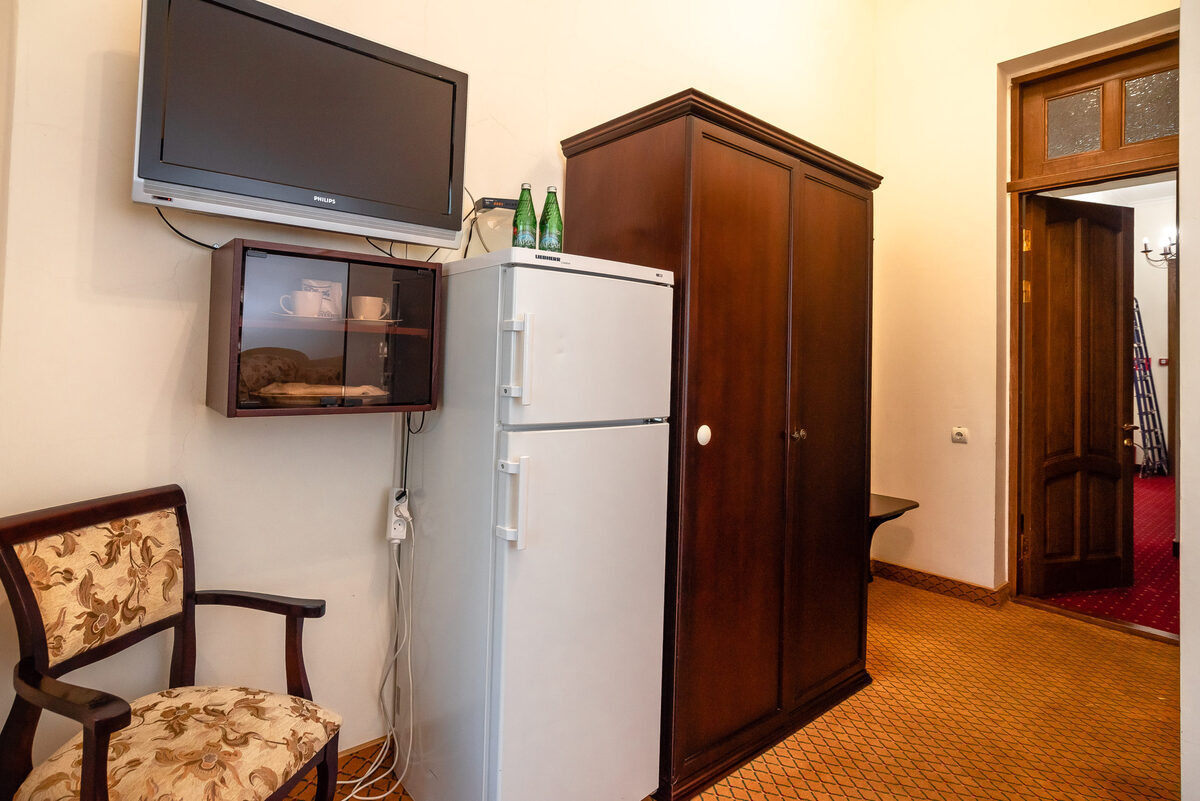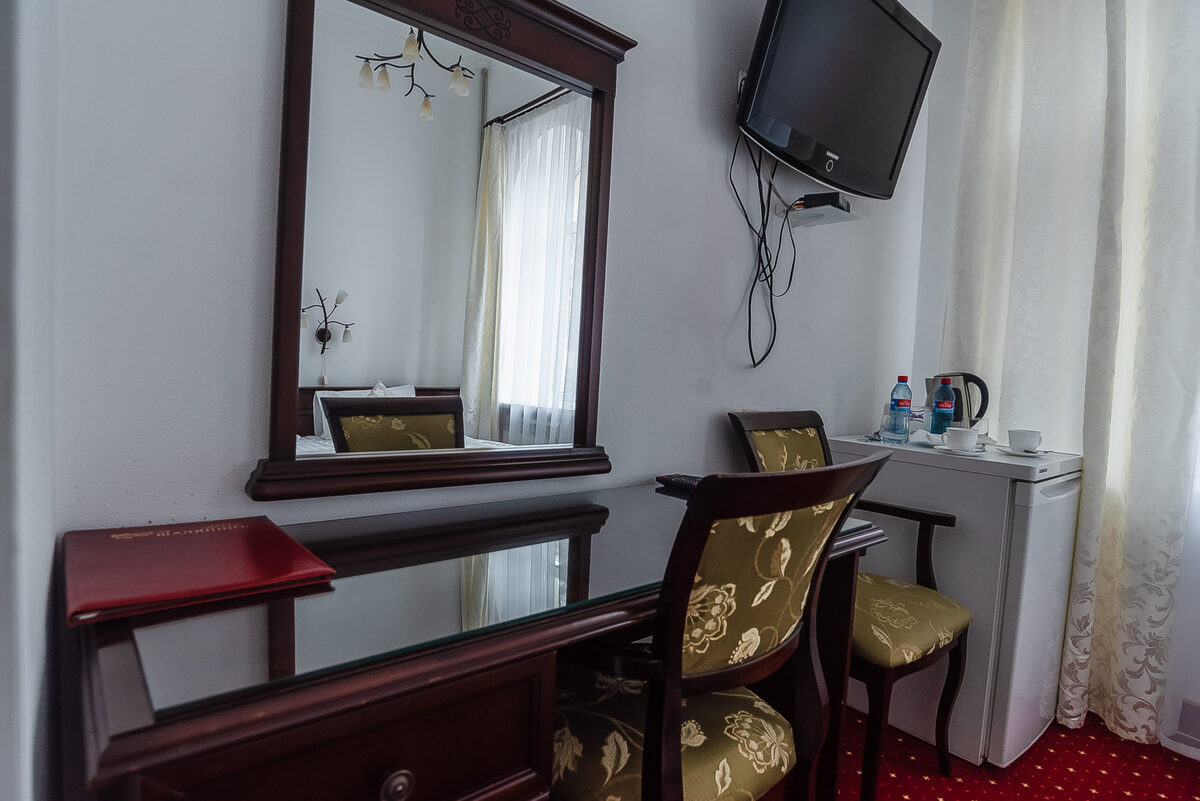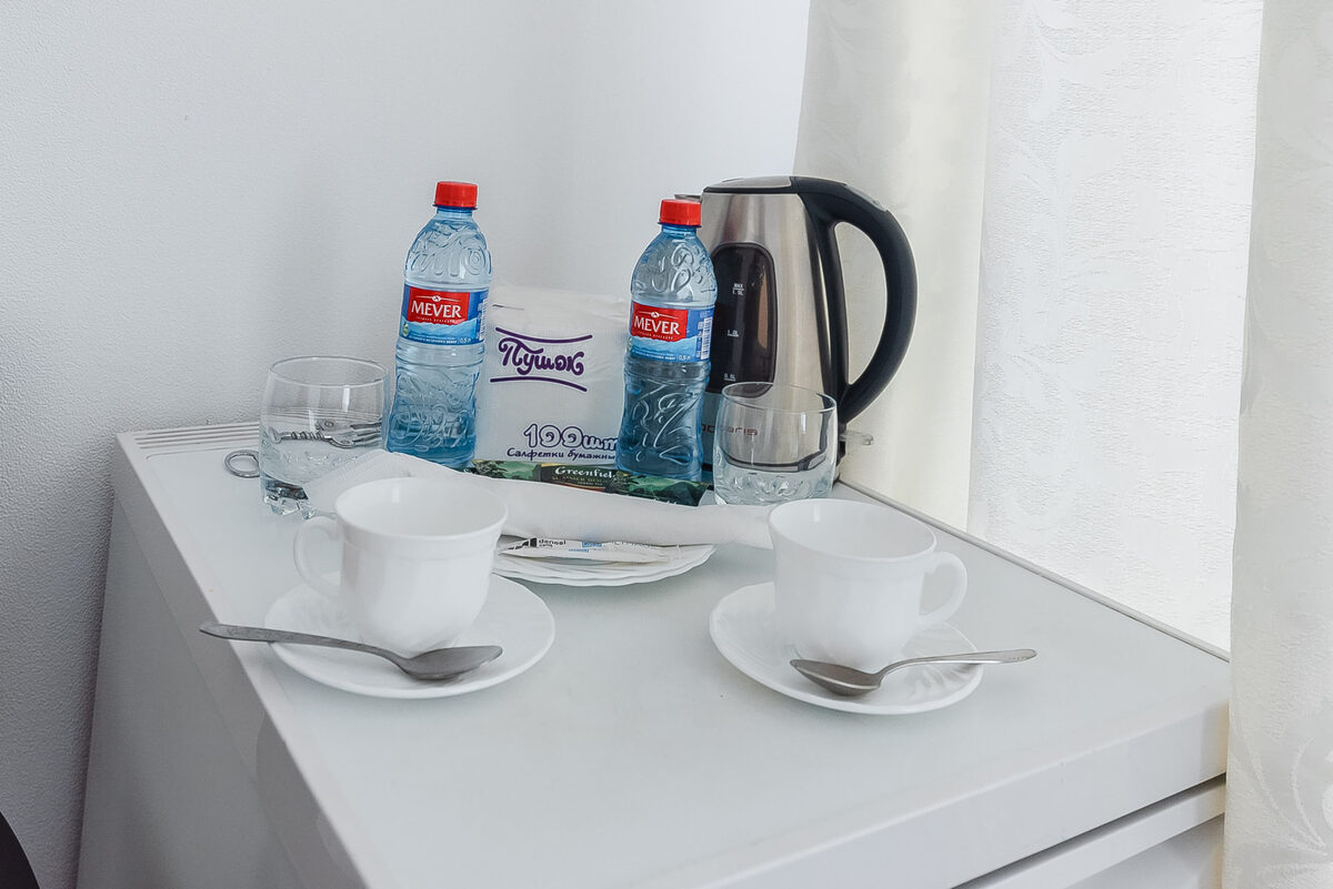 Оборудование: сейф, телевизор, телефон, холодильник, чайный набор посуды, электрочайник: минеральная вода.