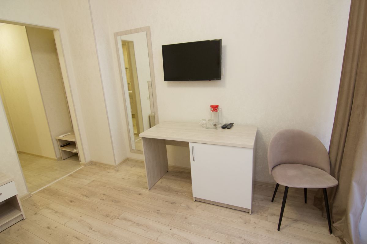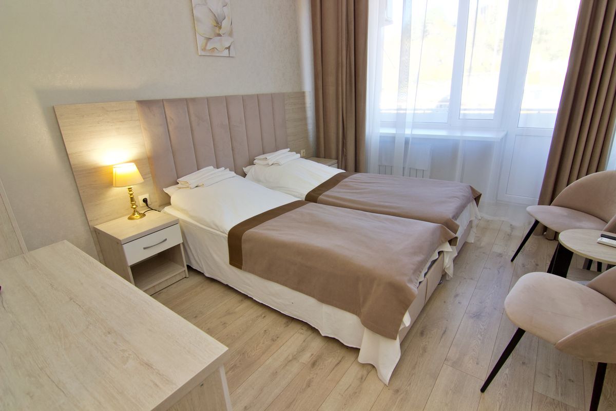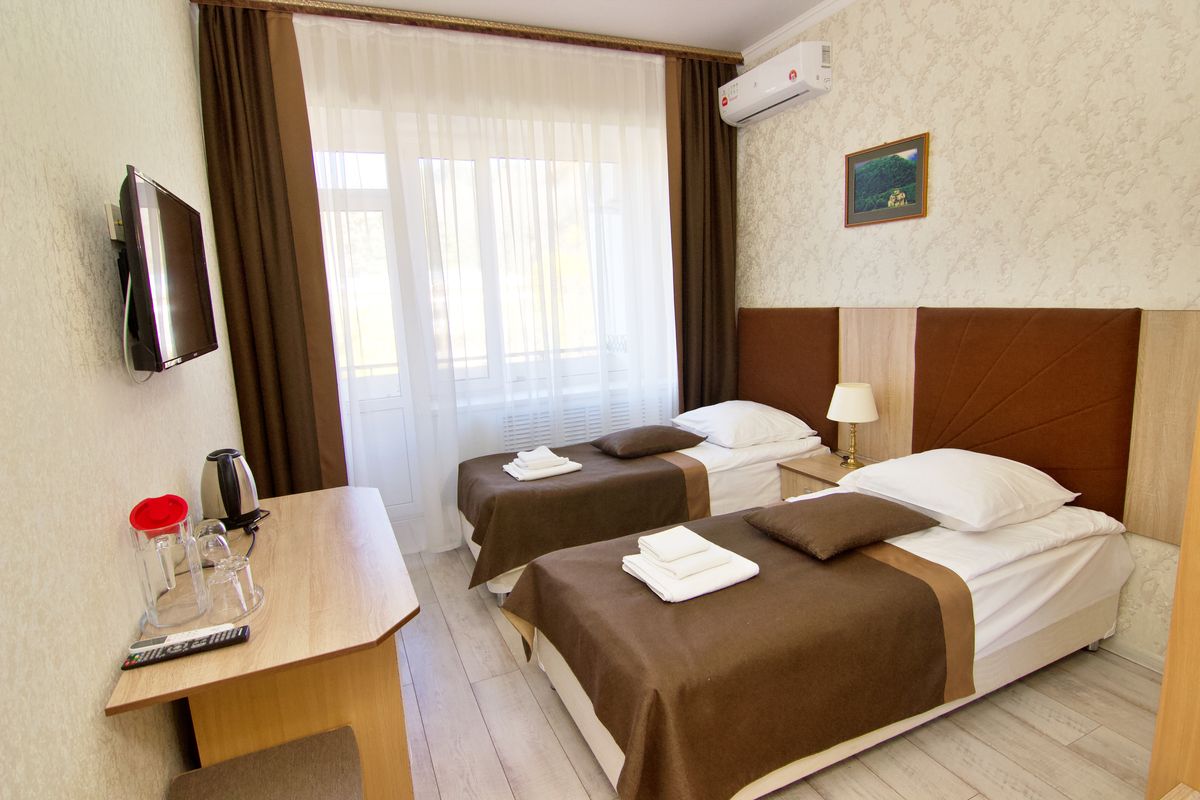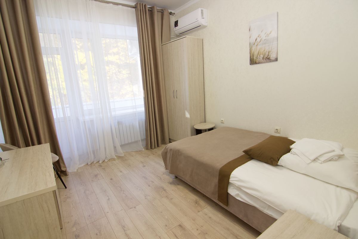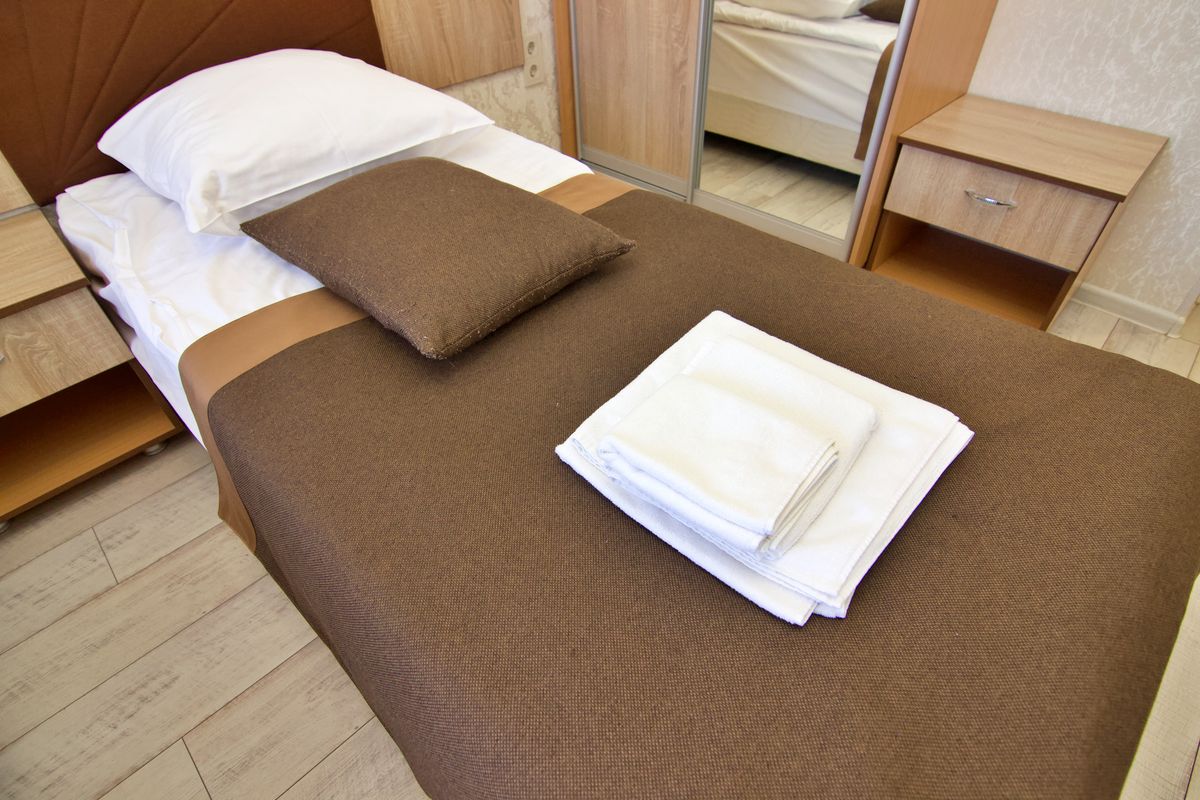 Сервис: Ежедневная уборка номера, смена полотенец и постельного белья 1 раз в 5 дней.