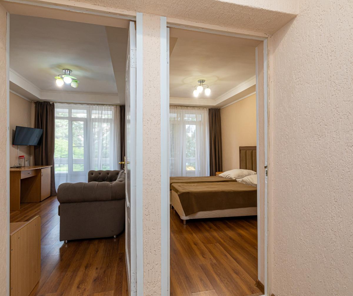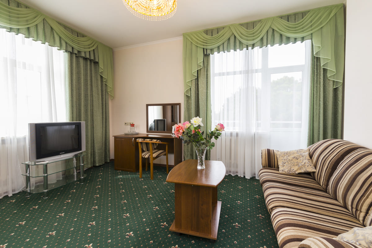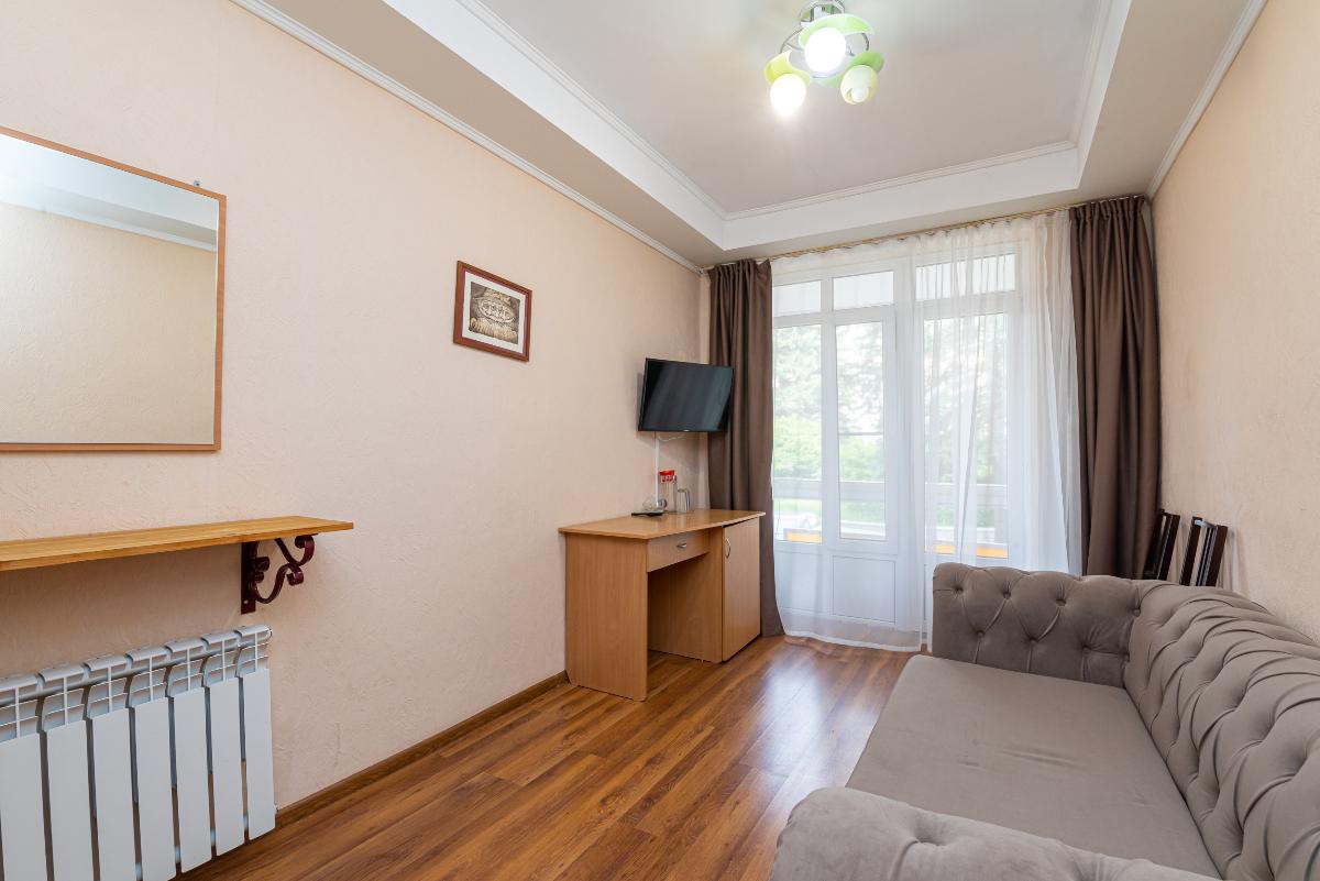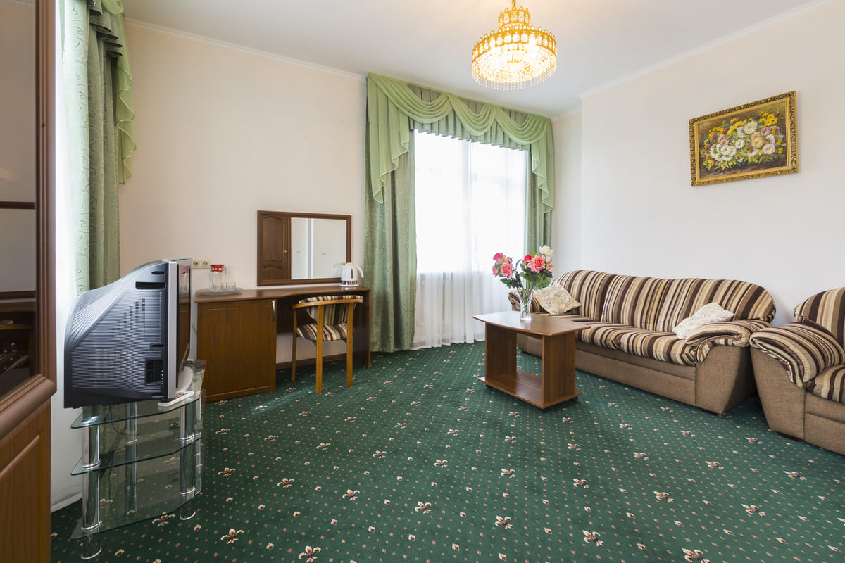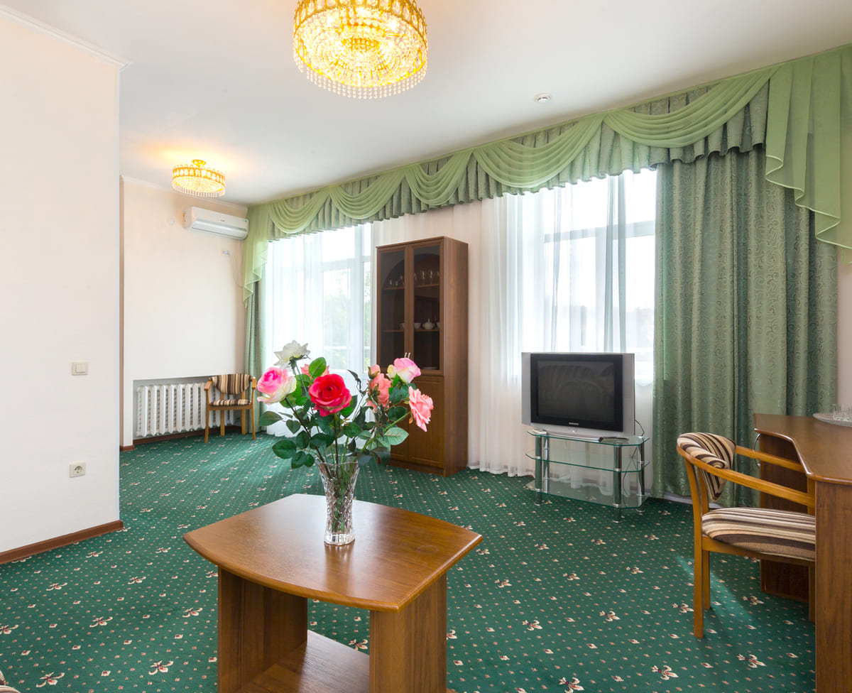 Сервис: Ежедневная уборка номера, смена полотенец и постельного белья 1 раз в 5 дней.