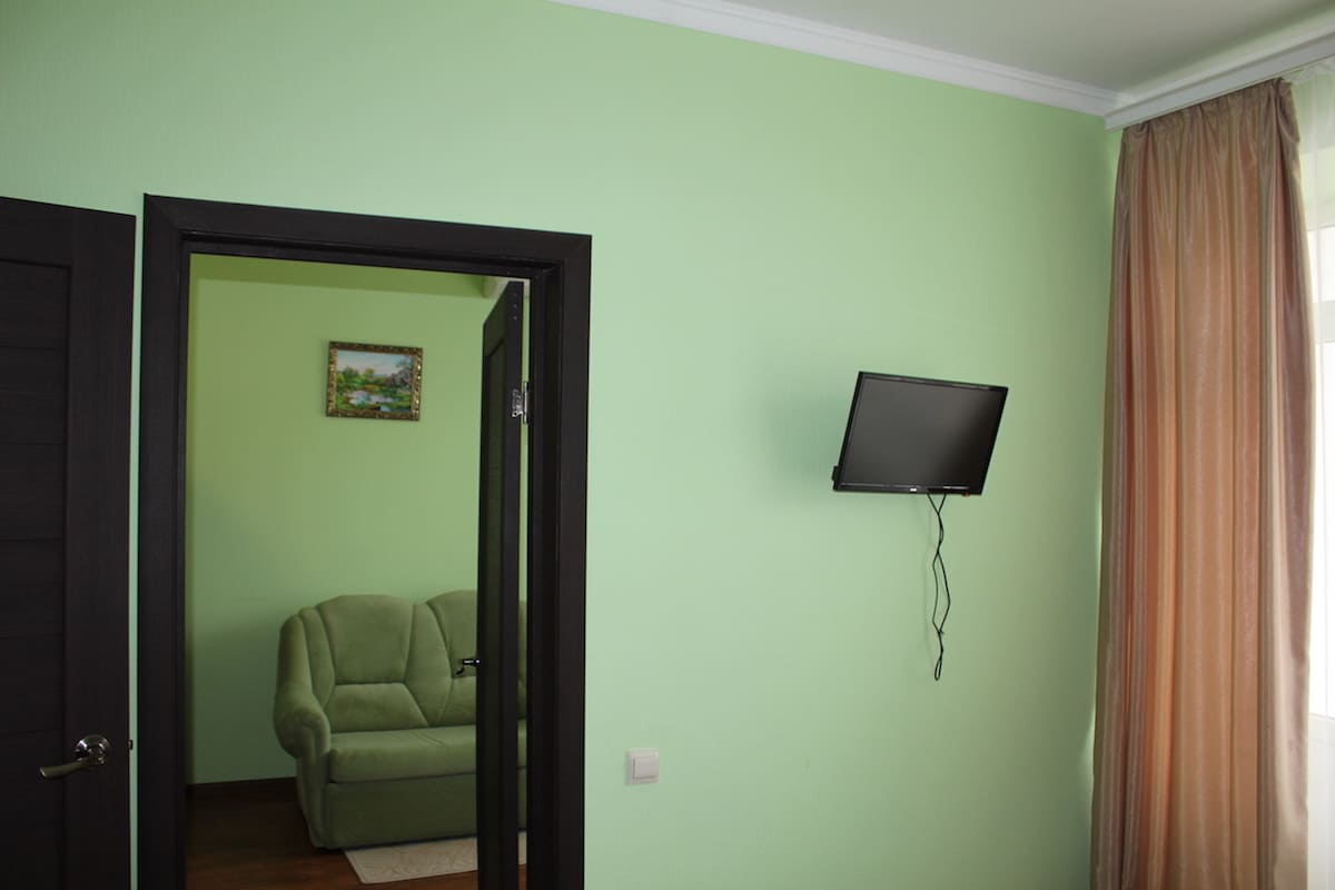 Оборудование: кондиционер, телевизор, холодильник, чайный набор посуды, электрочайник.