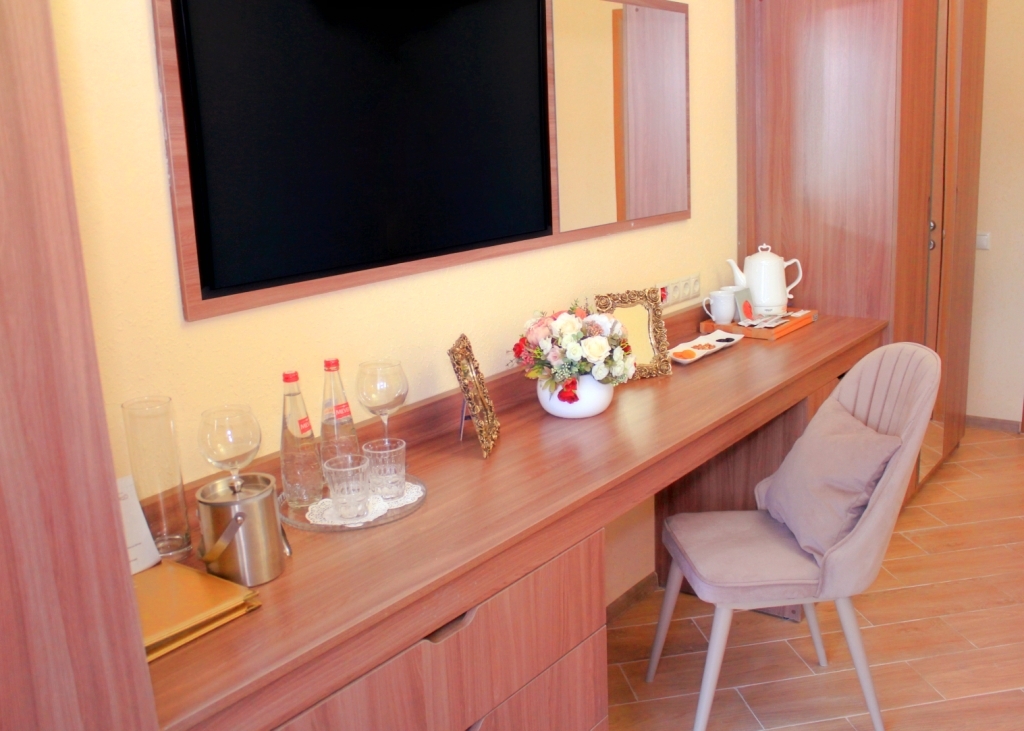 Оборудование: кондиционер, мини-холодильник, набор посуды, телевизор, чайная станция, электрочайник.