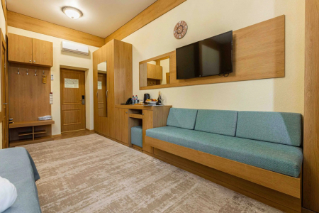 Сбалансированная диетическая кухня, большой выбор предложений по косметологии и расслабленная обстановка гарантируют полноценные отдых и лечение.
