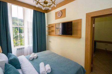 Удобное расположение: находится у входа в Верхний парк на одной из красивейших улиц Кисловодска, в 6 минутах от Каскадной лестницы и в 10 минутах от канатной дороги и Долины роз