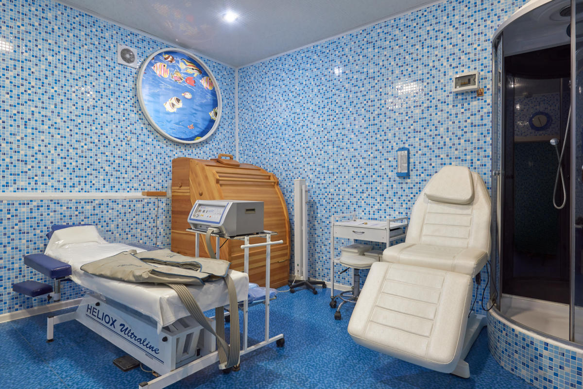 - А также: тракционная терапия для грыж и остеохондроза (КРАФТ-Германия), гемо-сканирование, спелеотерапия в тибетской соляной пещере для астмы и дерматитов, эндокринология (диабет, зоб, инсулиновые помпы Швейцария), офтальмология (микрохирургия МНТК Федорова), стоматология-ортодонтия, челюстно-лицевая хирургия (переломы, импланты, септопластика).