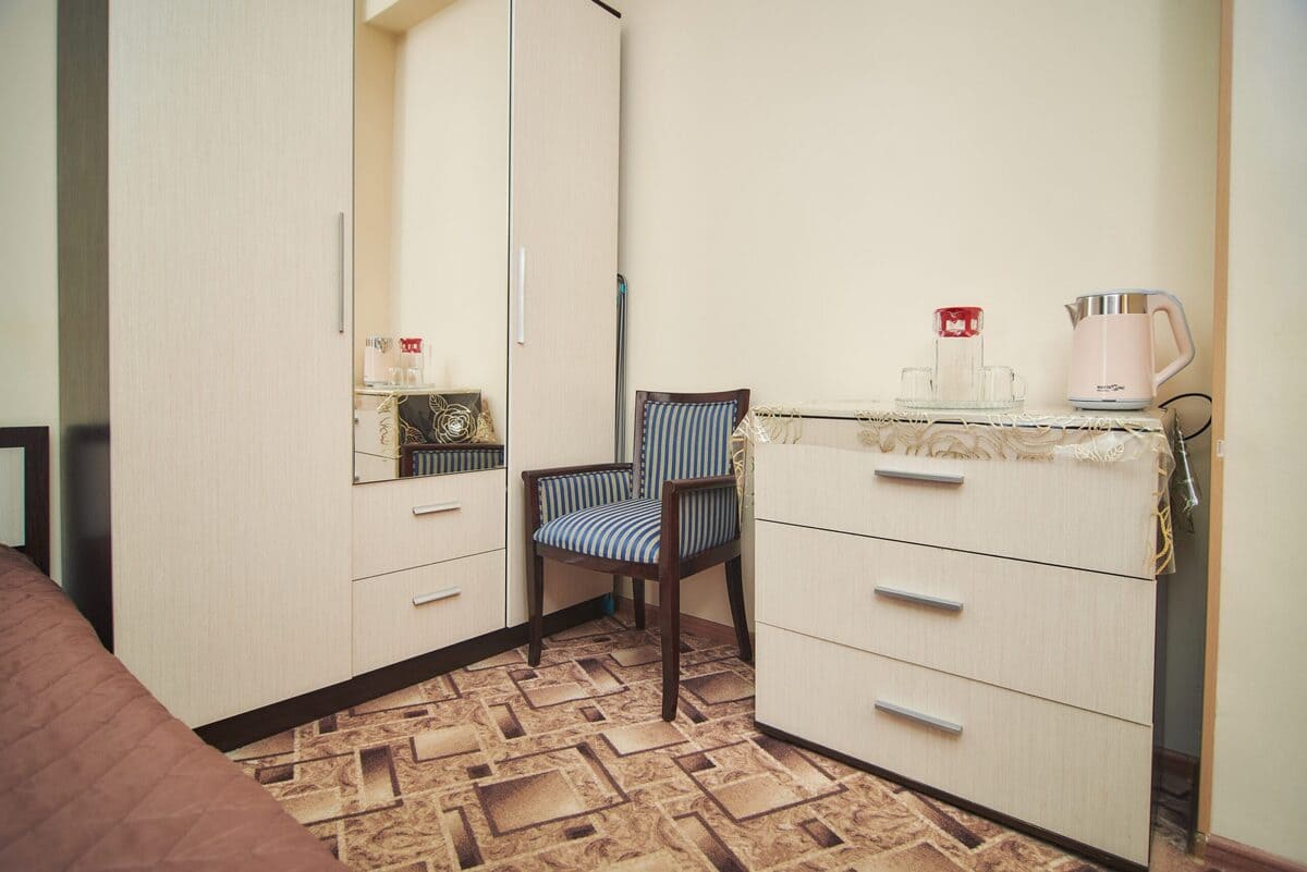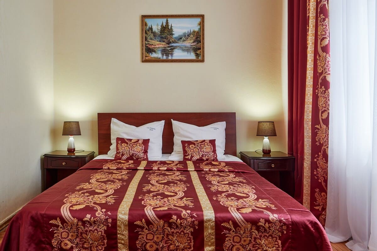 Сервис: Ежедневная уборка номера по будням. Смена постельного белья 1 раз в 3 дня. Смена полотенец 1 раз в 2 дня.