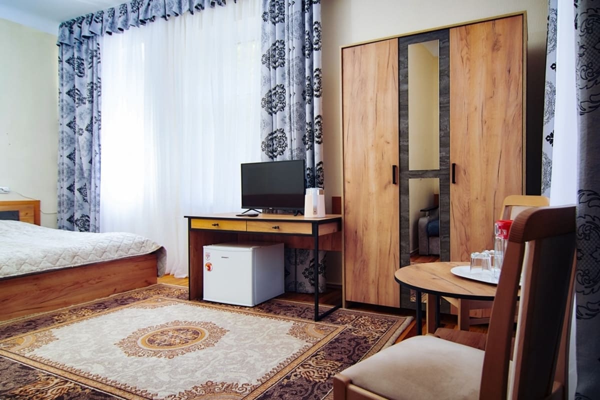 Для отдыхающих предлагаются комфортабельные номера со всей необходимой мебелью и бытовой техникой, соответствующие по своему уровню современным трехзвездочным гостиницам. Прими однокомнатных и двухкомнатных номеров стандартной категории, есть и апартаменты класса «люкс».