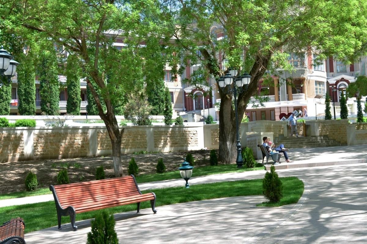 Рядом бюветы с минеральной водой «Ессентуки-4», «Славяновская», «Нарзан сульфатный».