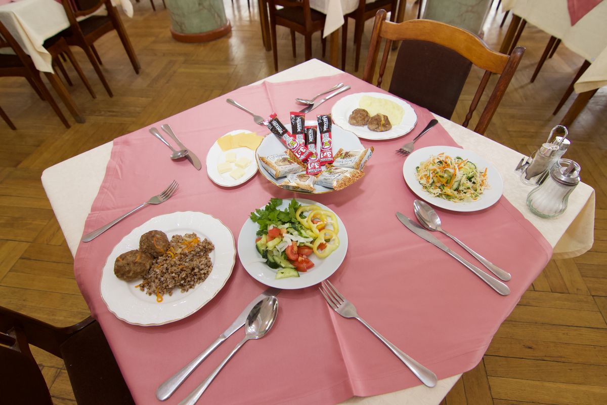 Особое внимание уделяется рациону питания, оно трехразовое, с разнообразными диетическими блюдами. Гости могут корректировать меню в соответствии со своими предпочтениями.