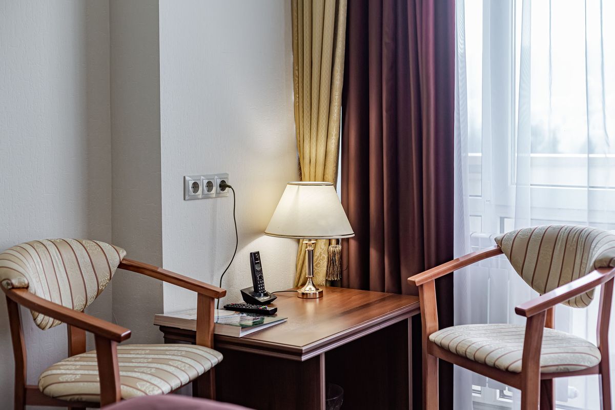 Оборудование: Телевизор, телефон, холодильник, утюг, фен, сейф, Wi-Fi, стандартные европейские электрические розетки на 220V 50Гц.