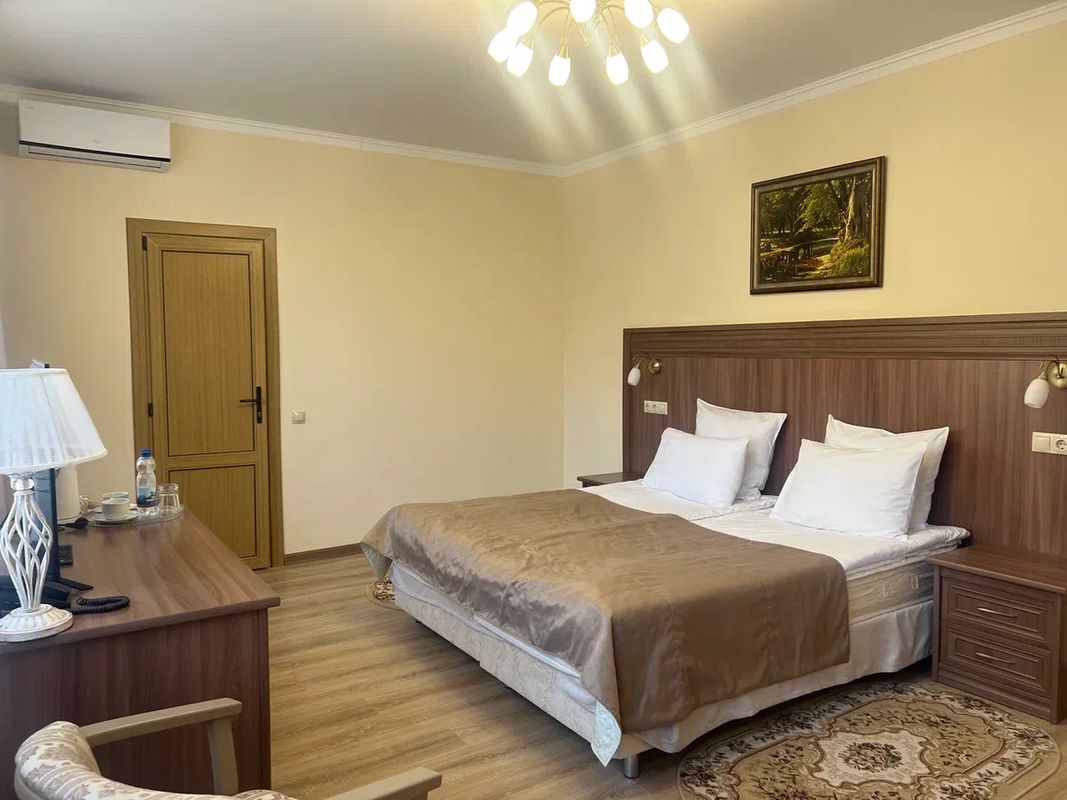 Сервис: Ежедневная уборка, Wi-Fi, питьевая вода, средства личной гигиены, полотенца, халат, тапочки.