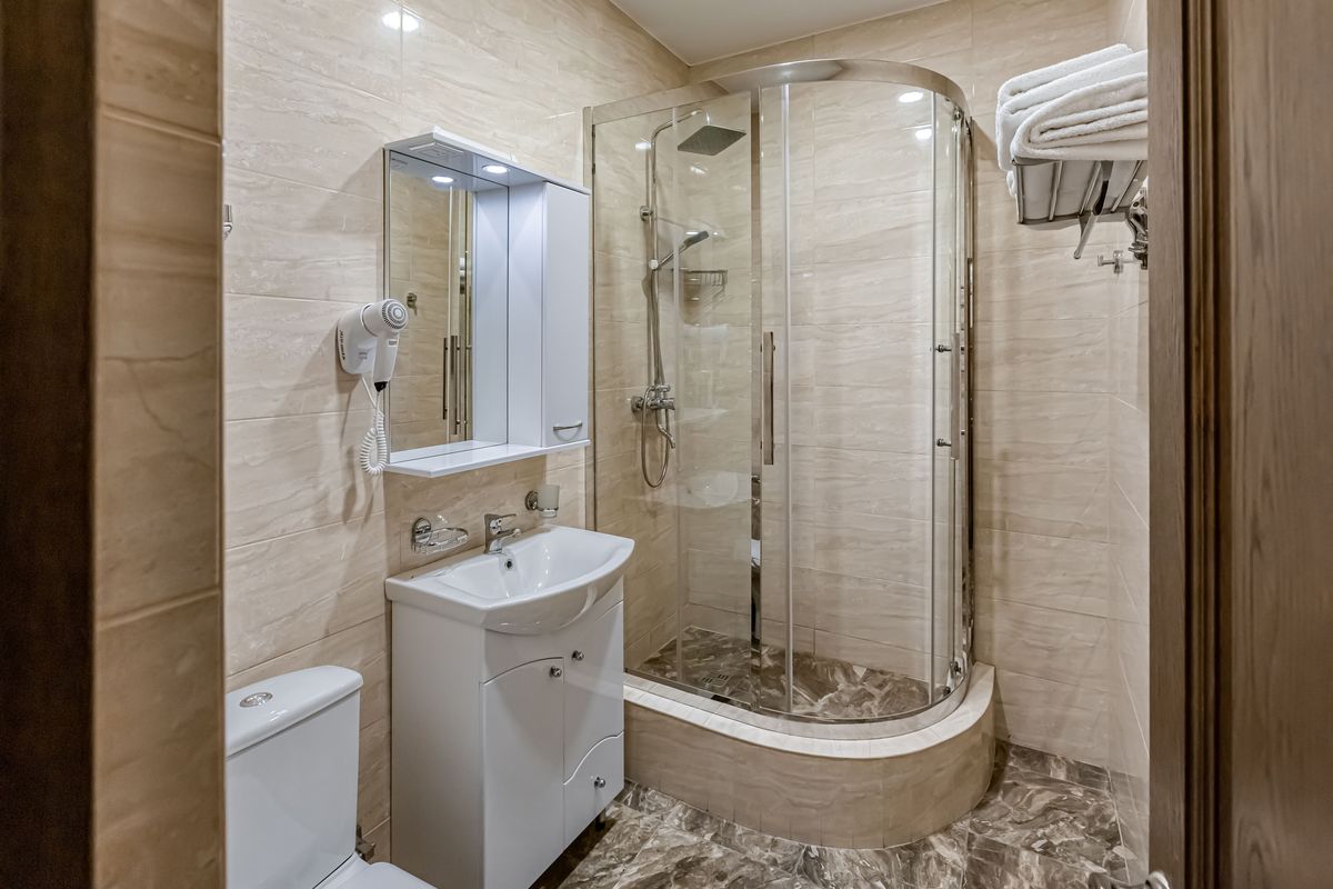 Санузел: Ванная комната с душем или душевой кабиной и WC.