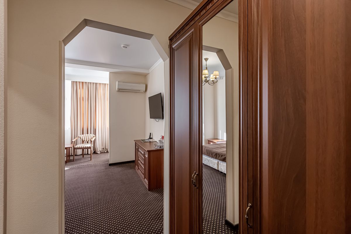 Оборудование: Телевизор, телефон, холодильник, утюг, фен, сейф, система кондиционирования воздуха, Wi-Fi, стандартные европейские электрические розетки на 220V 50Гц.