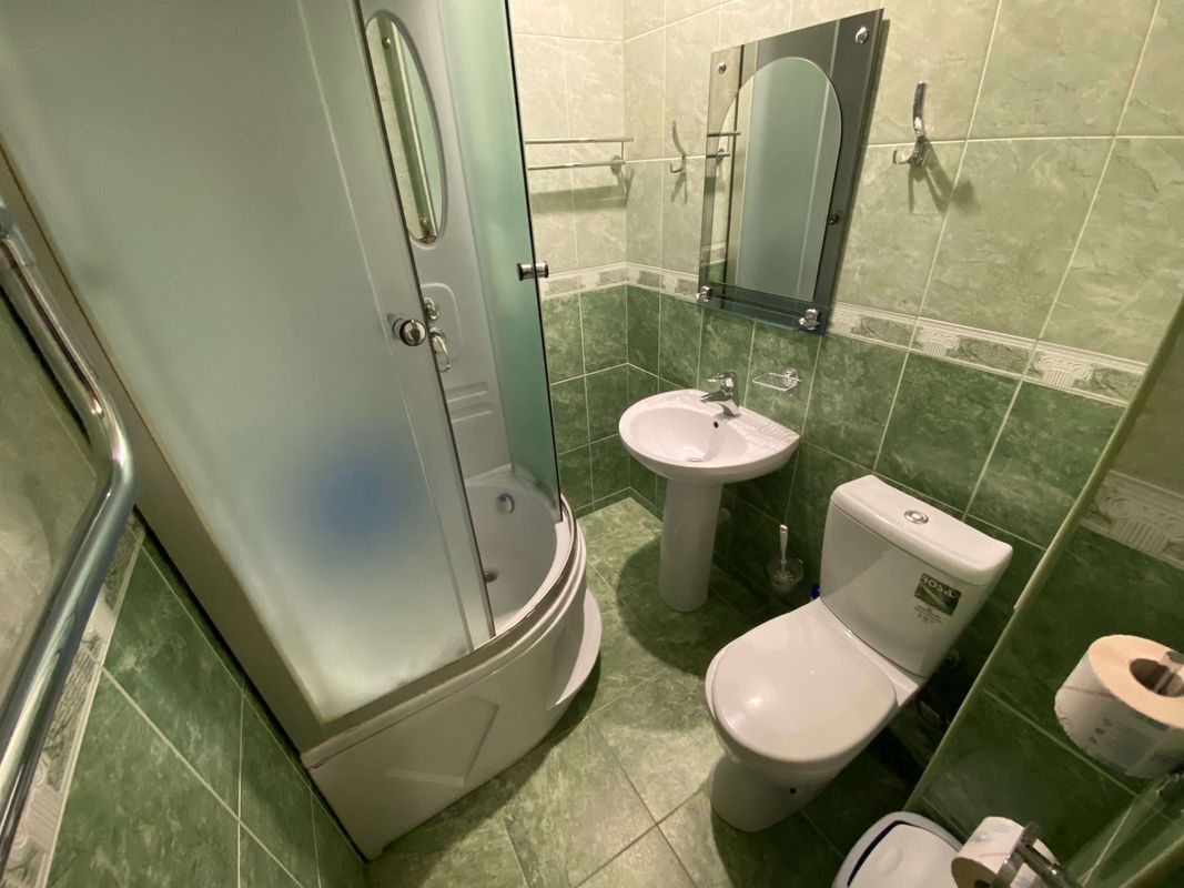 Санузел: Ванная комната с душевой кабиной и WC или душем и WC.