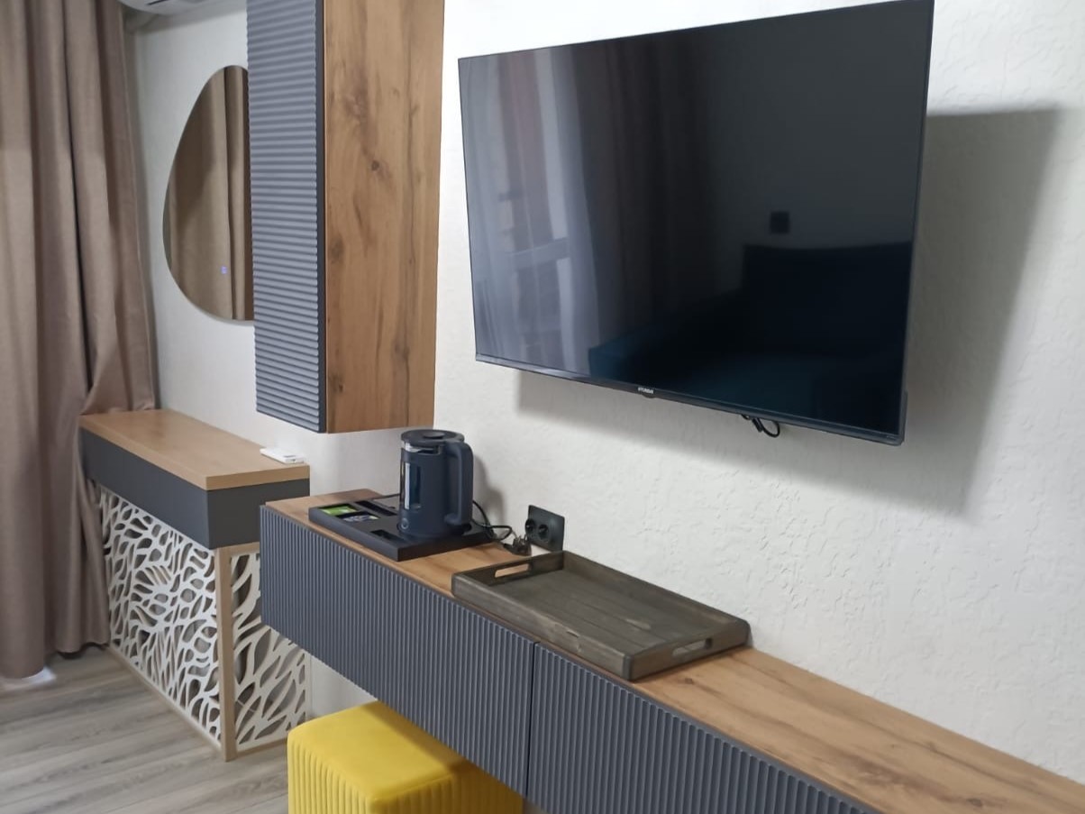 Оборудование: гладильная доска, кондиционер, телевизор, холодильник, чайный набор посуды, электрочайник.