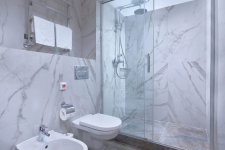 Санузел: душевая кабина, фен, косметический набор.