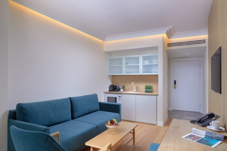 Оборудование: телевизор 42″, мини-бар, телефон, сейф, система кондиционирования воздуха, интернет Wi-Fi.
