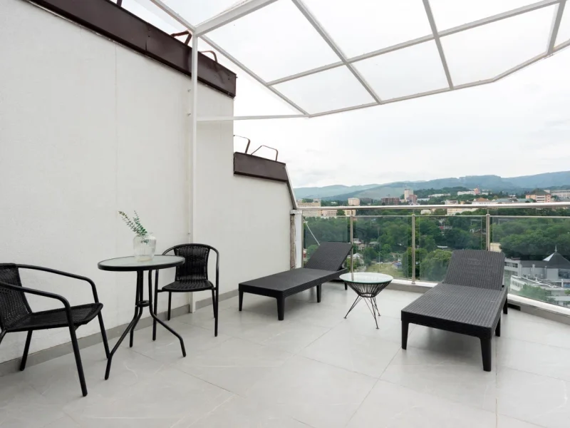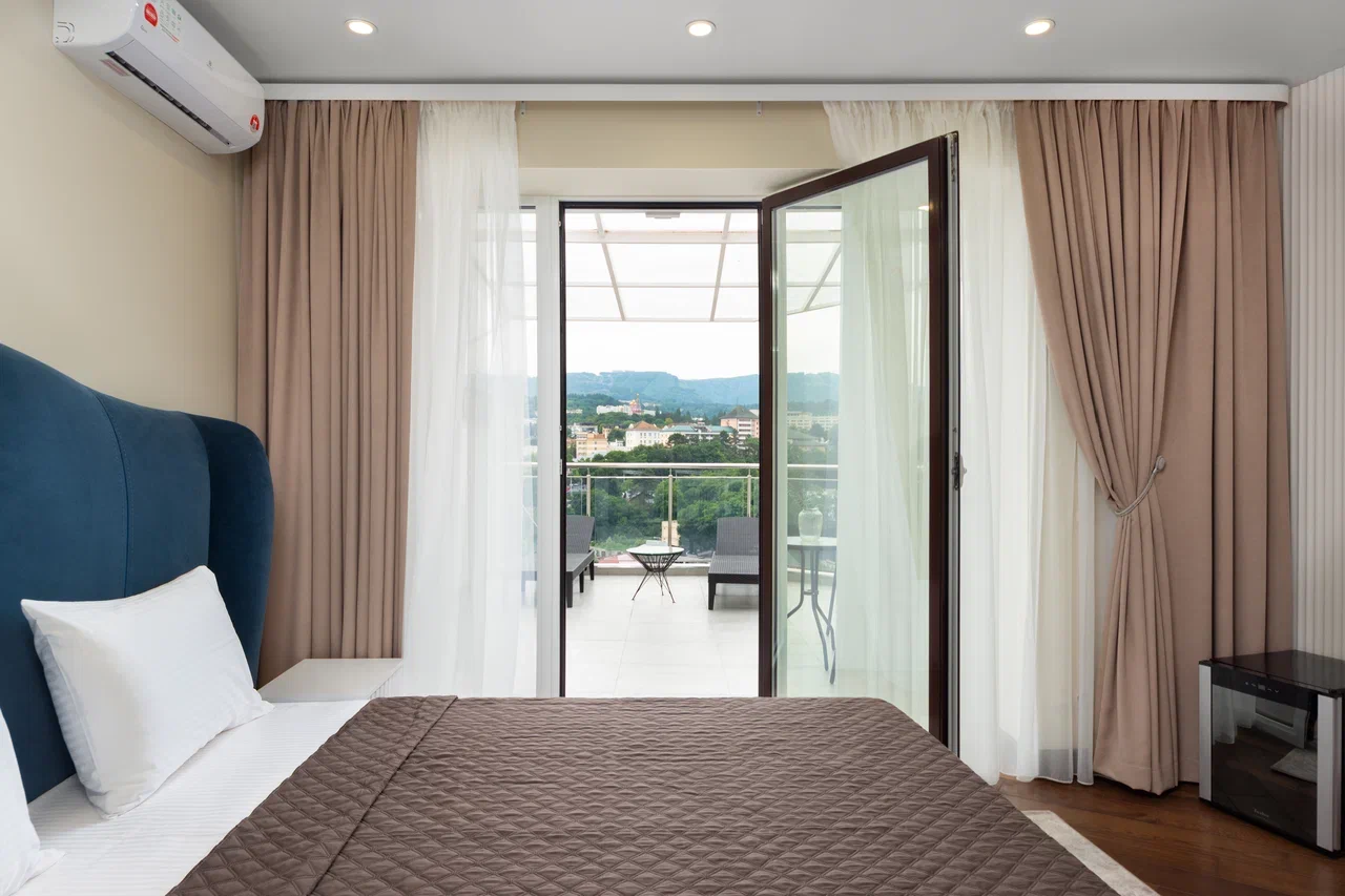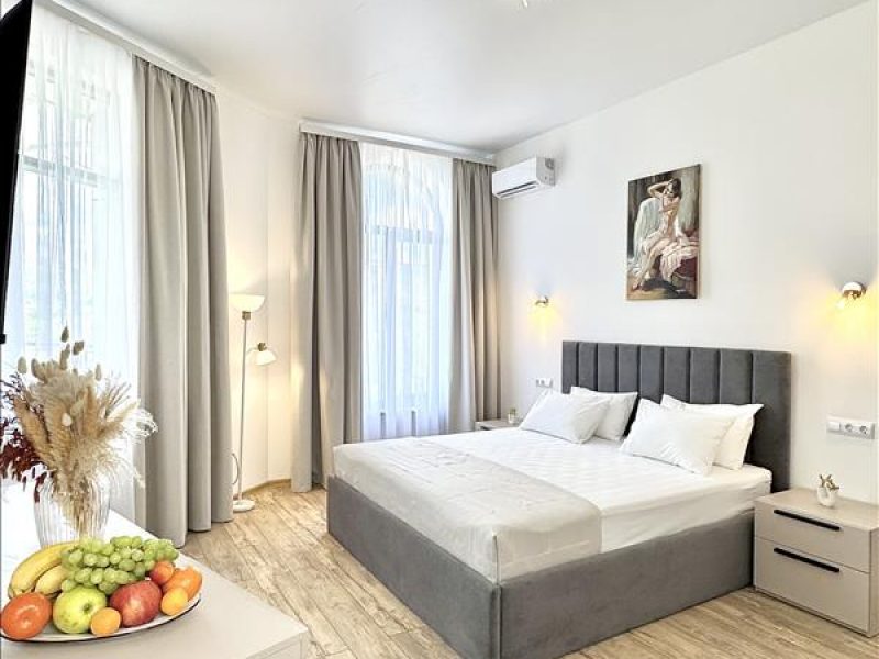 Оборудование: мини-холодильник, чайник, кондиционер, телевизор с Smart TV и кабельным ТВ.