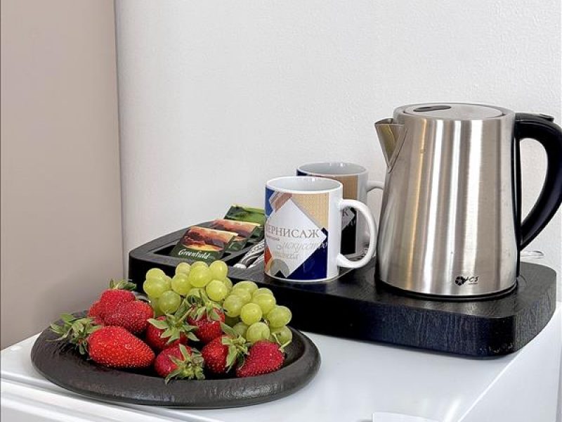 Оборудование: телевизор Smart TV с плоским экраном (кабельное ТВ), чайник, чайный набор, стаканы.