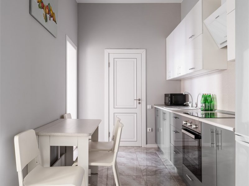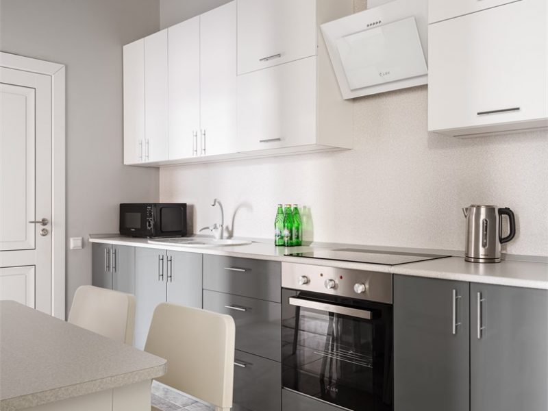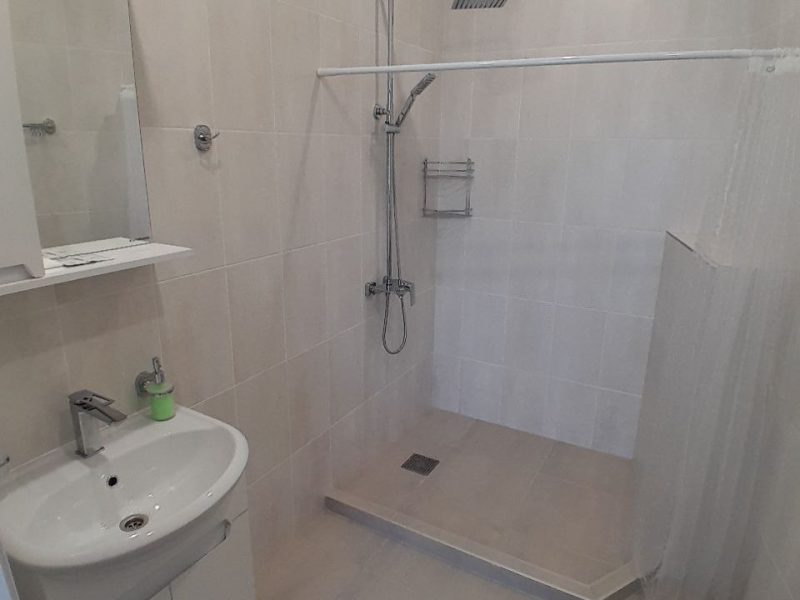 Оборудование: телевизор Smart TV, холодильник, микроволновка, чайник, чайная пара, столовые приборы, тарелки, кондиционер, стиральная машина.