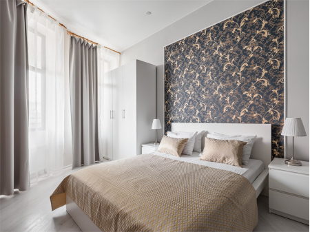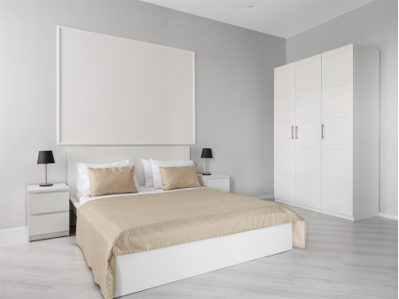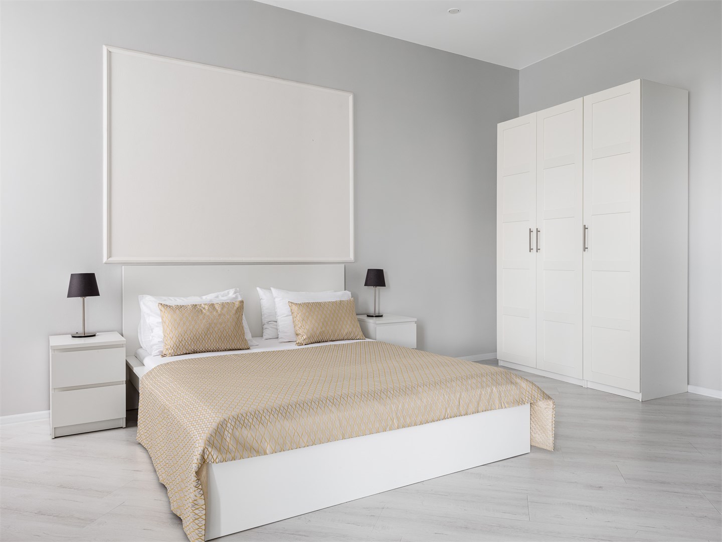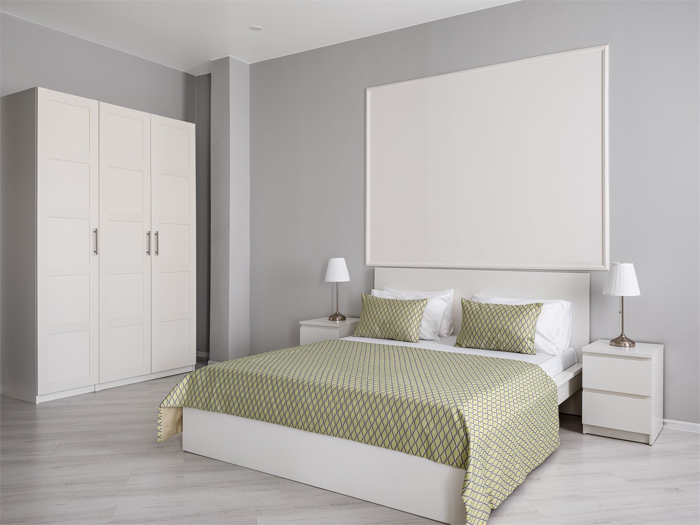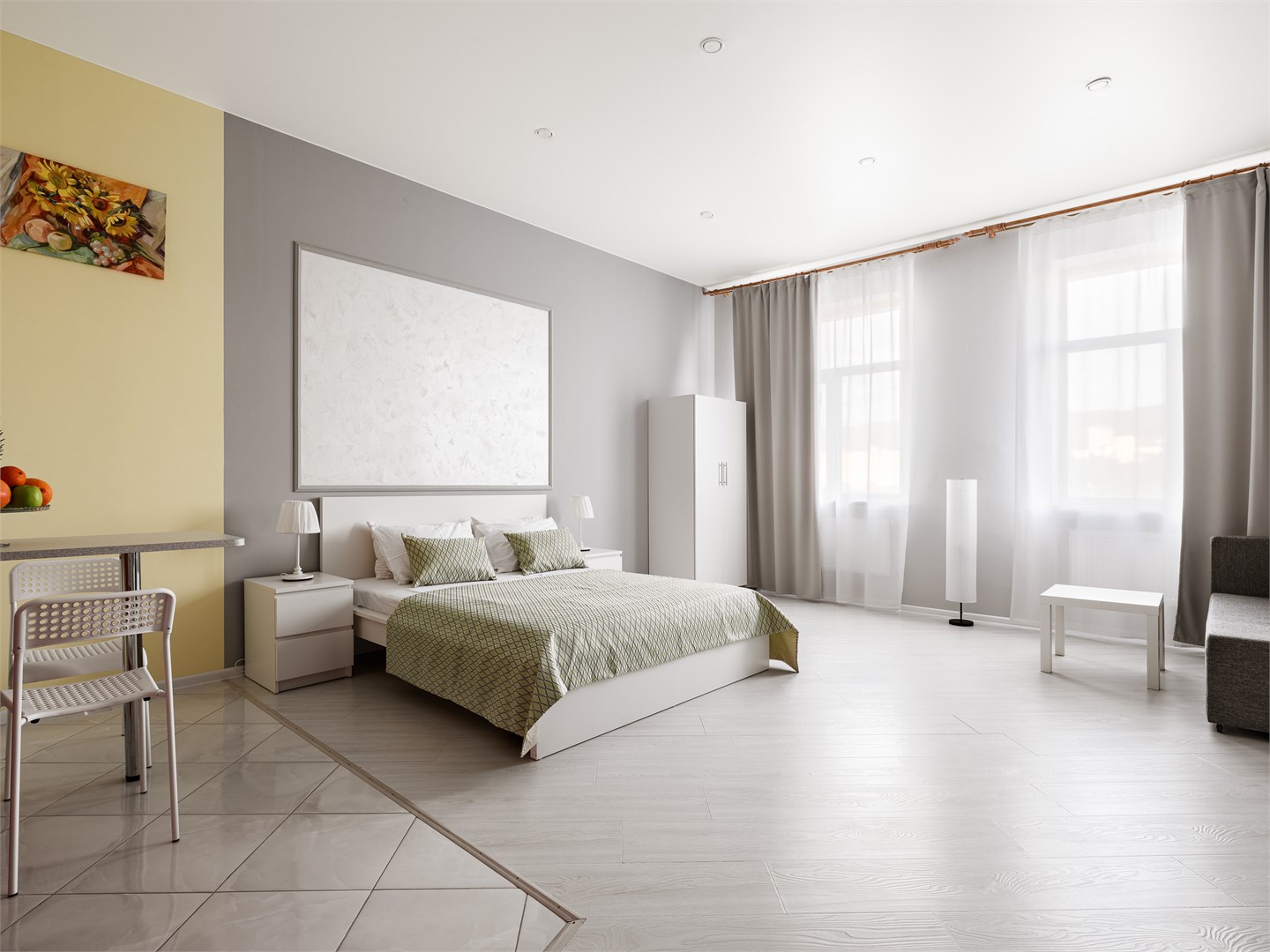 Мебель: двуспальная кровать/две односпальные кровати, шкаф для одежды, стол, стулья.