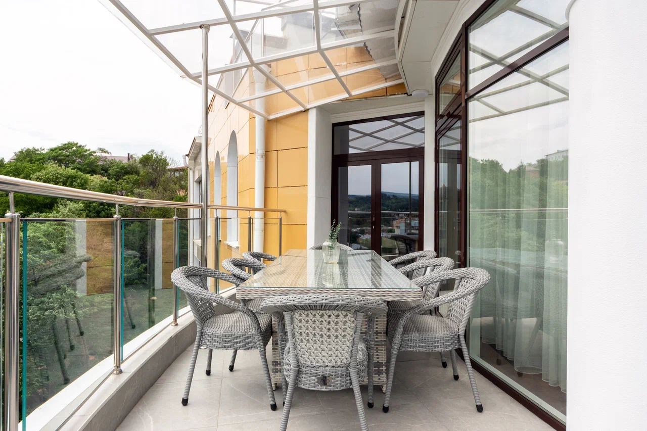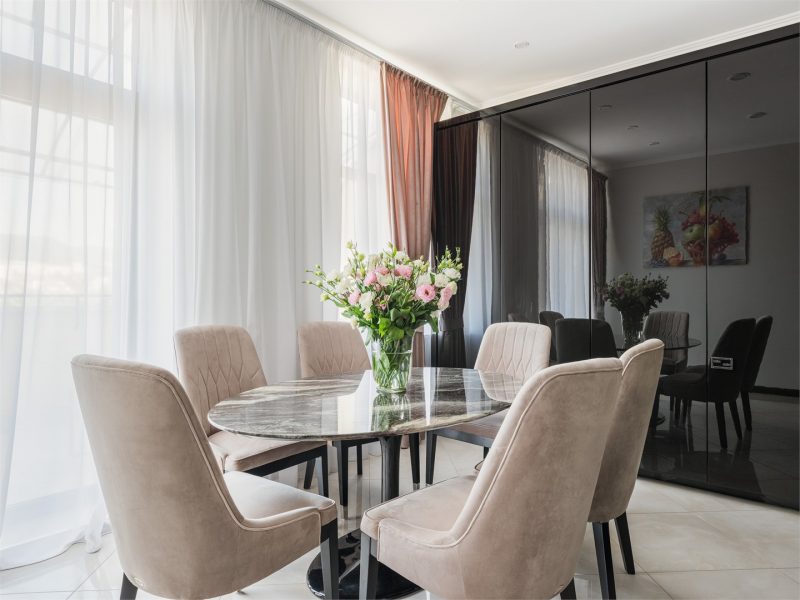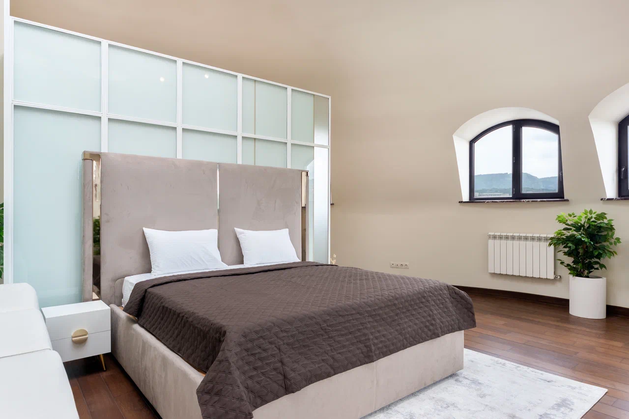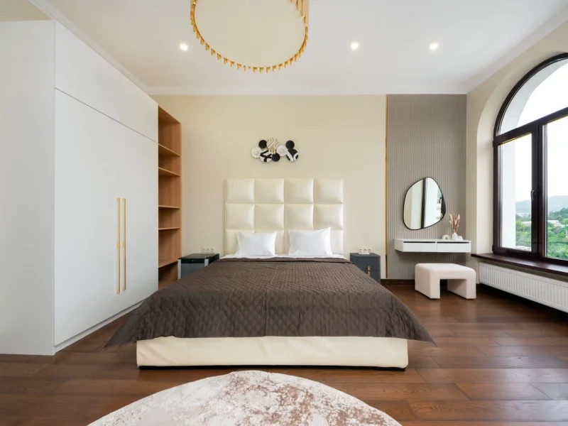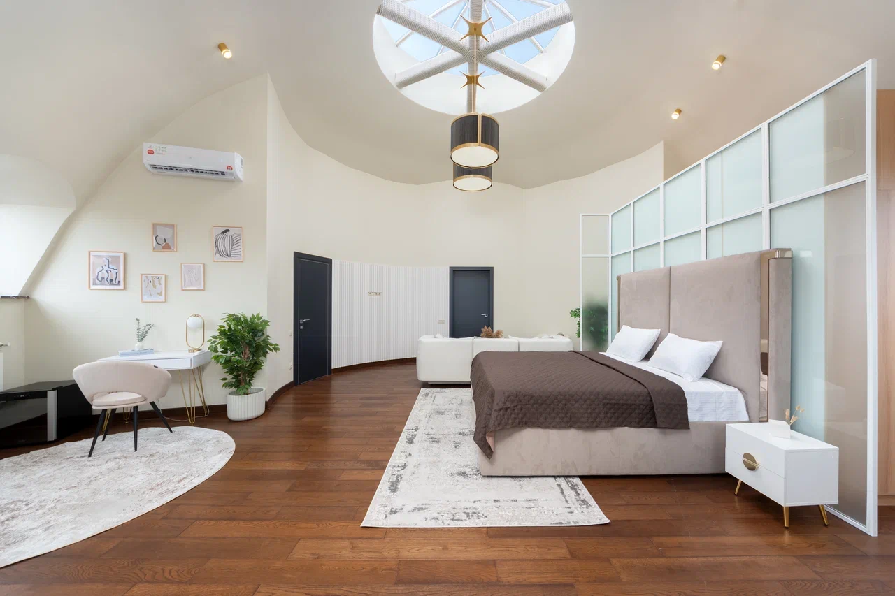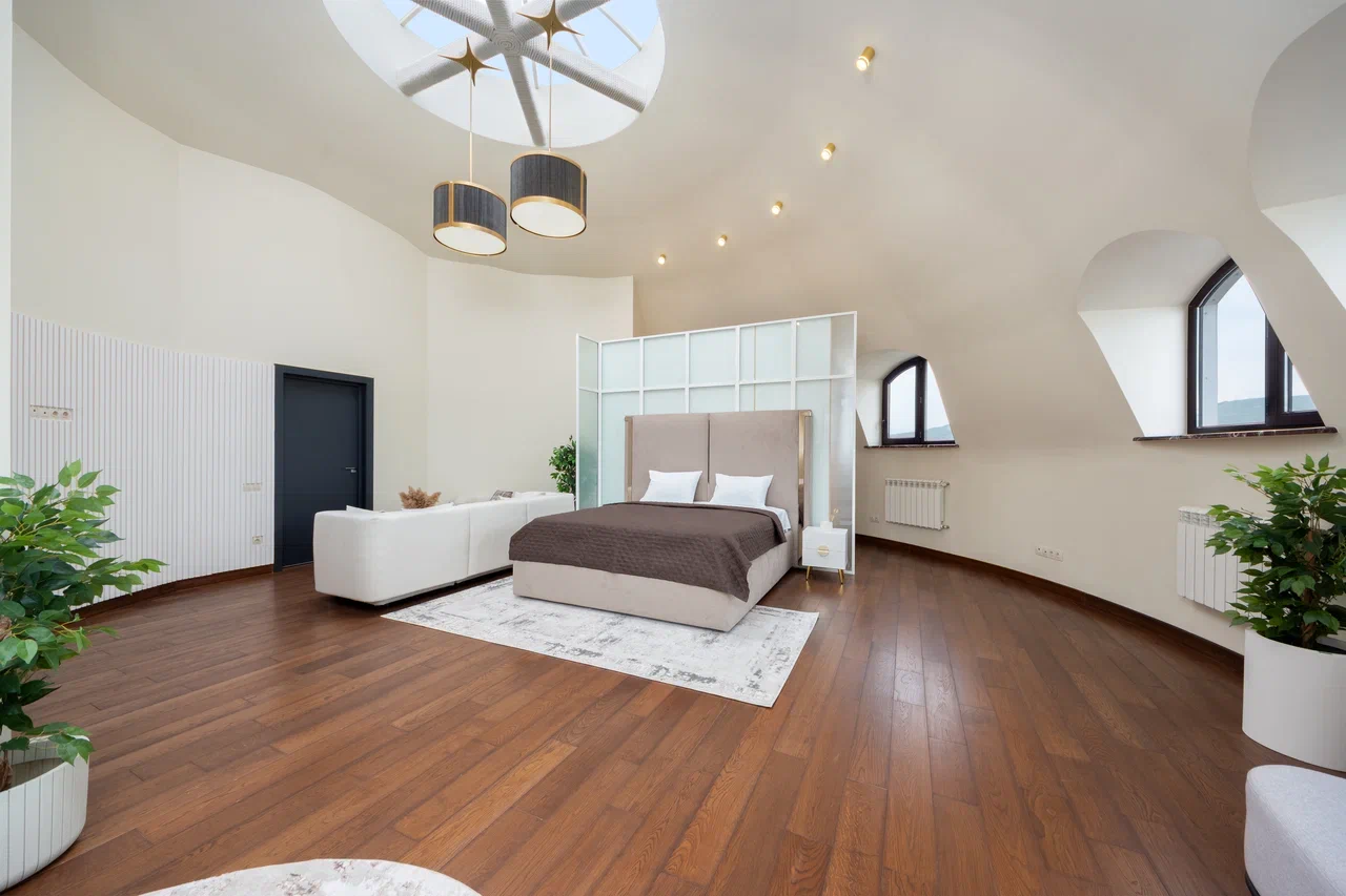 Мебель: 3 кровати king-size, раскладной диван, эксклюзивная дизайнерская мебель, обеденный стол, стулья.