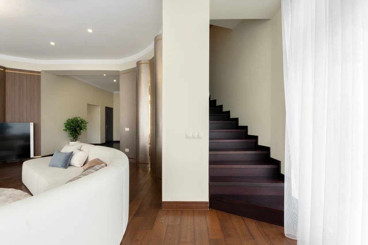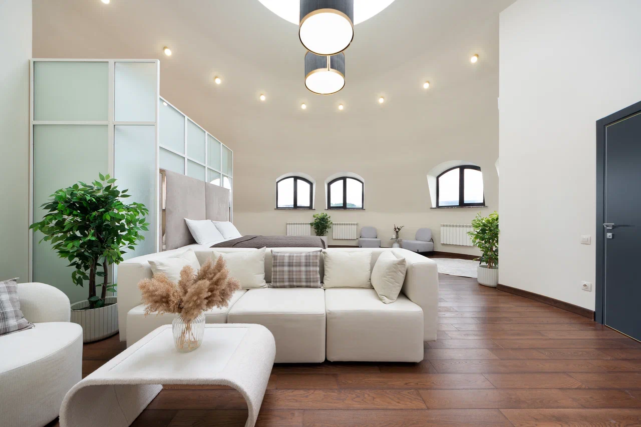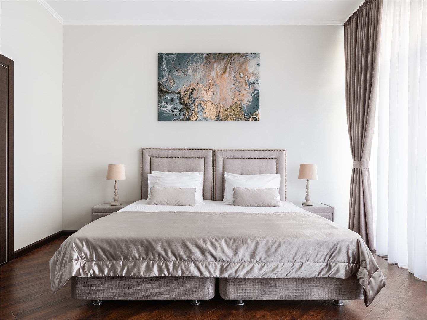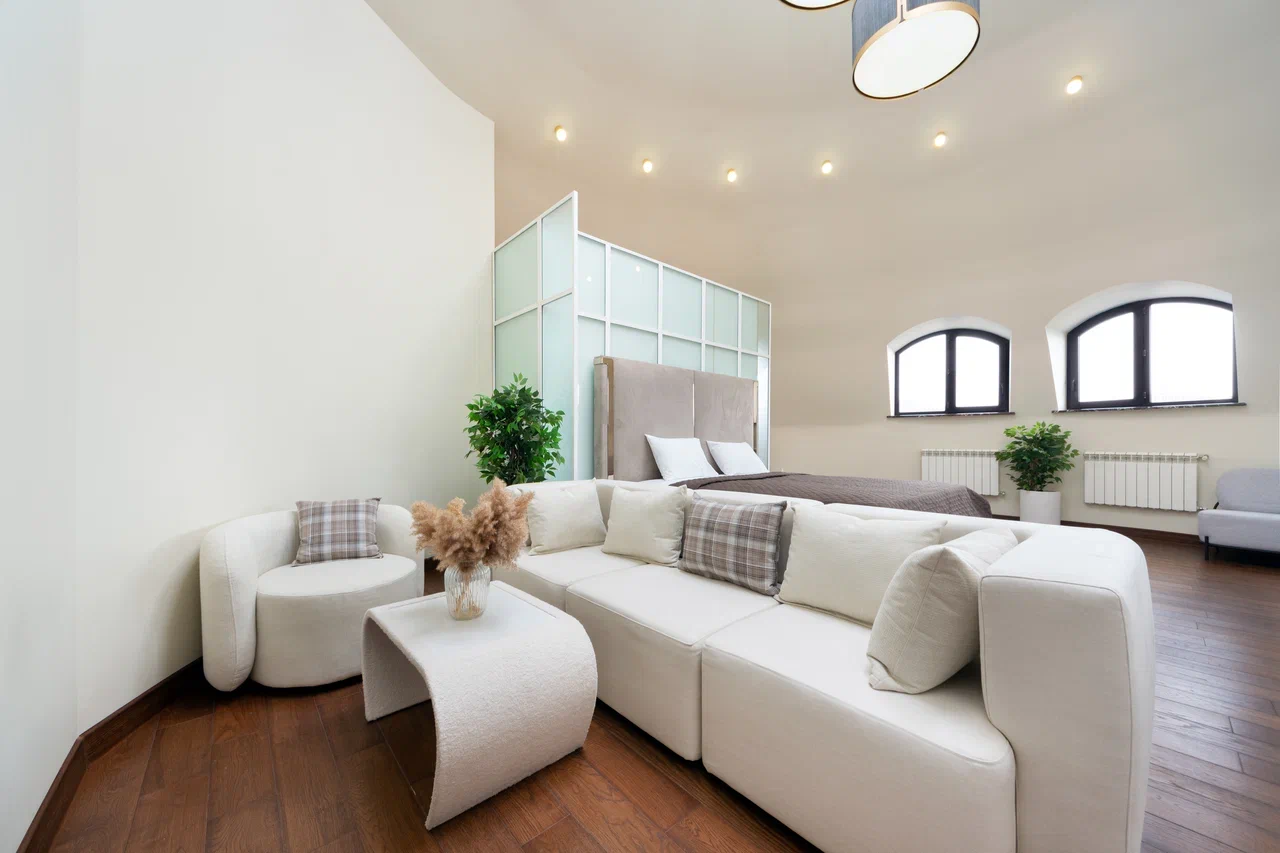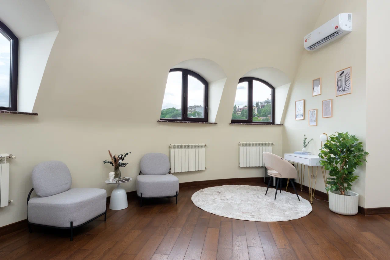 Мебель: 3 кровати king-size, раскладной диван, эксклюзивная дизайнерская мебель, обеденный стол, стулья.