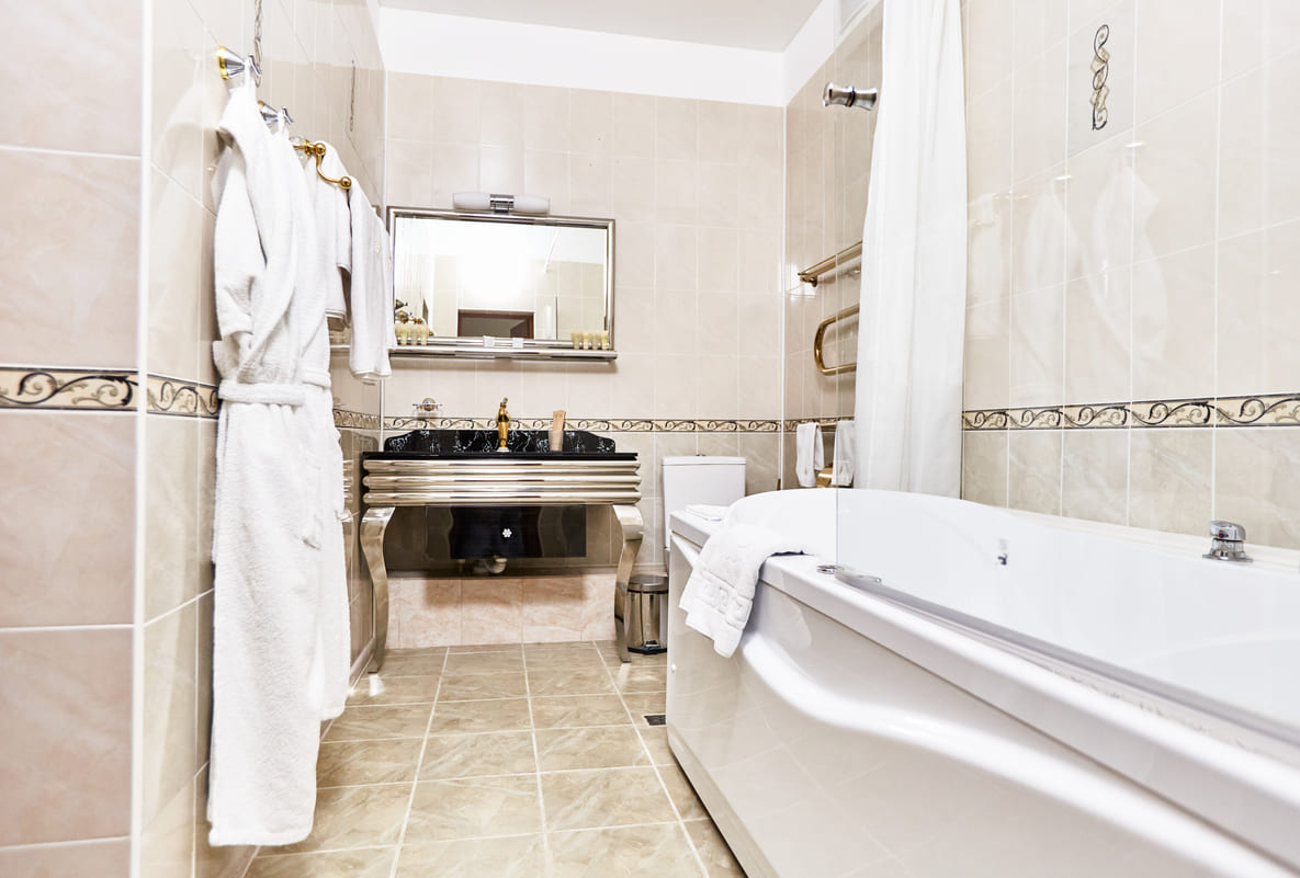 Санузел: Ванна, джакузи, фен.