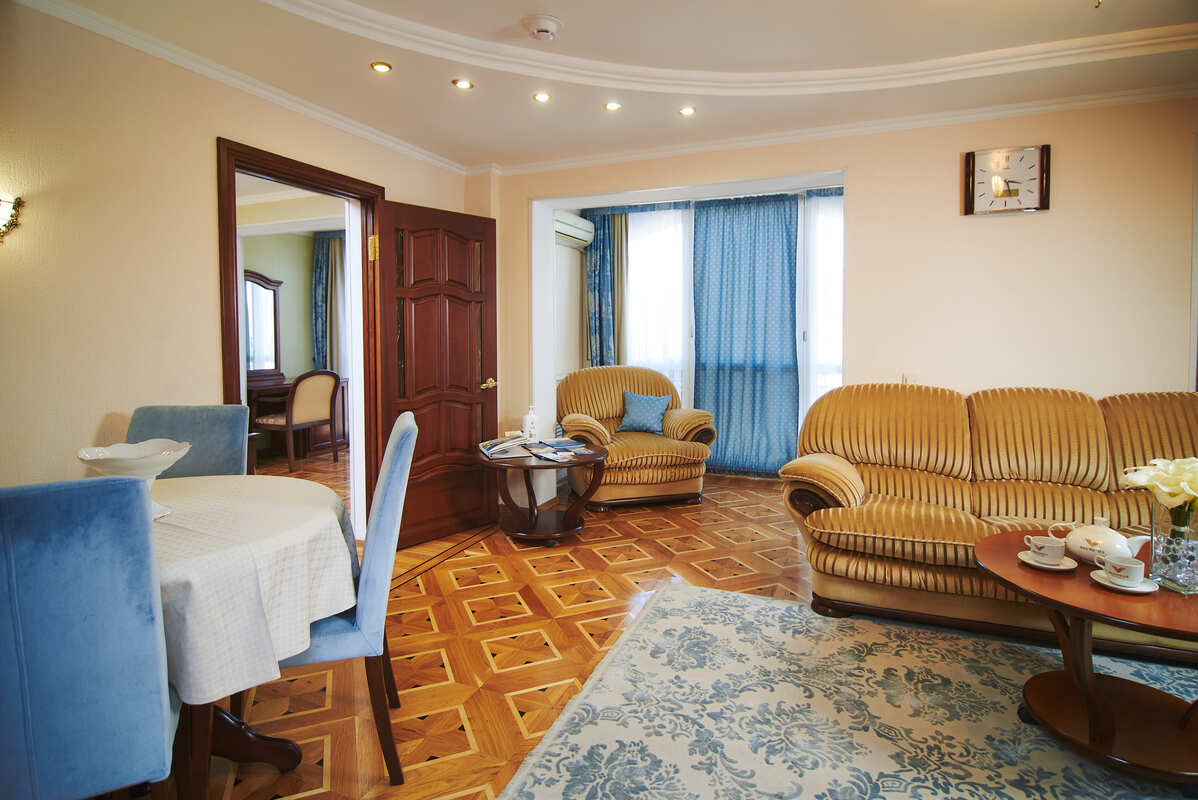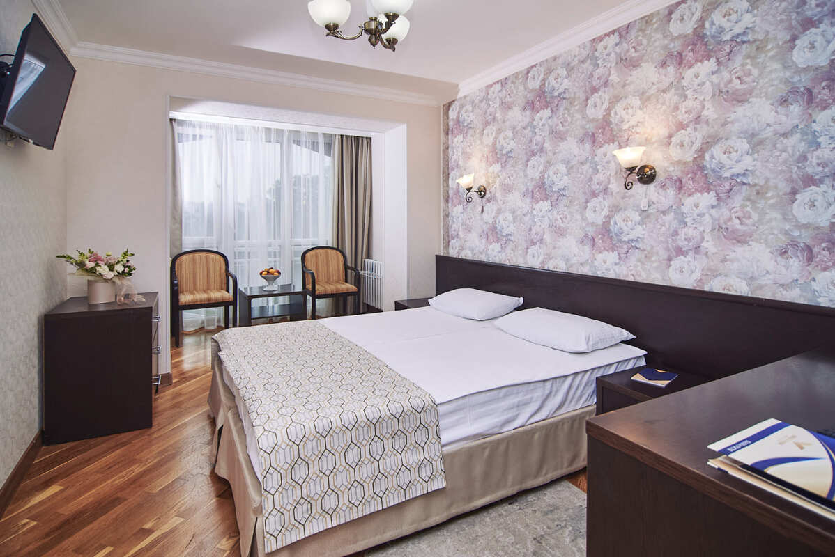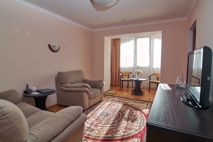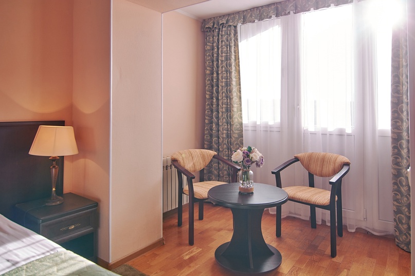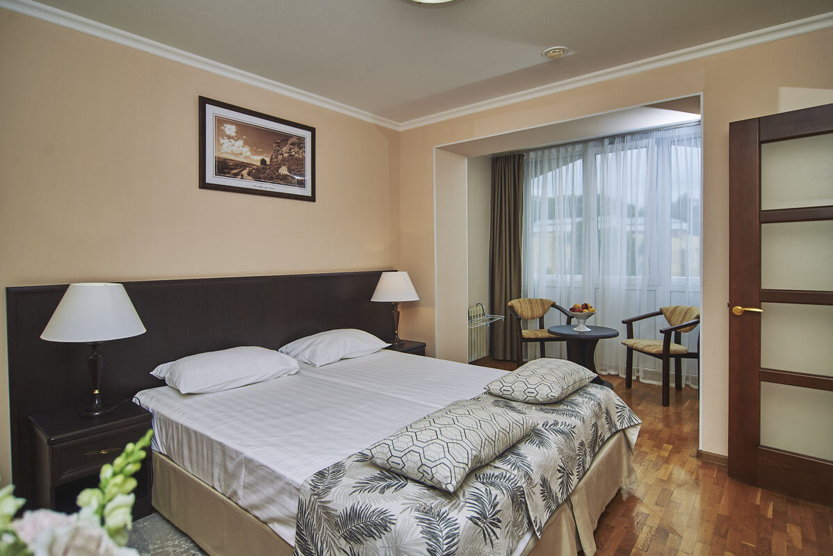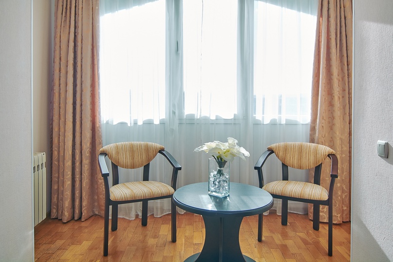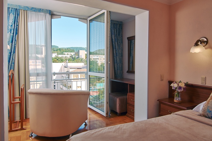 Были в санатории в ноябре 2025 года и хочу поделиться впечатлениями. Уборка номеров проходит каждый день, выносят мусор, пополняют гель и шампунь, полотенца и бельё меняют раз в три дня. В улучшенных номерах ещё выдают халаты. Сам номер в целом чистый, но видно, что пора делать ремонт. В шкафу сломана полка, об этом говорили при заезде, но так и не починили, паркет потёртый, перила на балконе облупились. Телевизор старенький, картинка рябит, обещали настроить через пару дней, но ничего не изменилось. Тем, кто берёт номер во двор, стоит знать, что там идёт стройка, днём довольно шумно, мы жили высоко, выше седьмого этажа, и это спасало. С лифтами отдельная история, их четыре, но ездят очень медленно, постоянно собираются очереди, поэтому чаще всего поднимались пешком. По медицине первый приём у терапевта назначили на 16 часов в день приезда, но из-за медленного приёма назначения получили только после ужина, в первый день процедуры вообще не успели начать. Терапевт работала неспешно и немного невнимательно, пришлось возвращаться, потому что часть процедур просто забыли назначить. Зато сам набор процедур радует, медперсонал вежливый и аккуратный. Питание отличное, без всяких нареканий, выбор блюд большой, всё вкусно и свежо, в столовой идеальная чистота. Пару раз во время обеда играла живая музыка, а шеф-повар лично выходил к гостям и спрашивал, всё ли нравится. В целом санаторий оставил приятное впечатление, хотя некоторые моменты немного расстраивали.