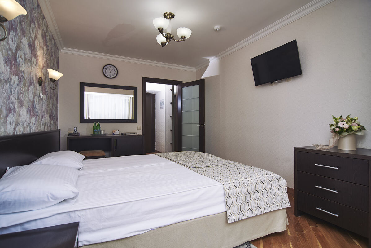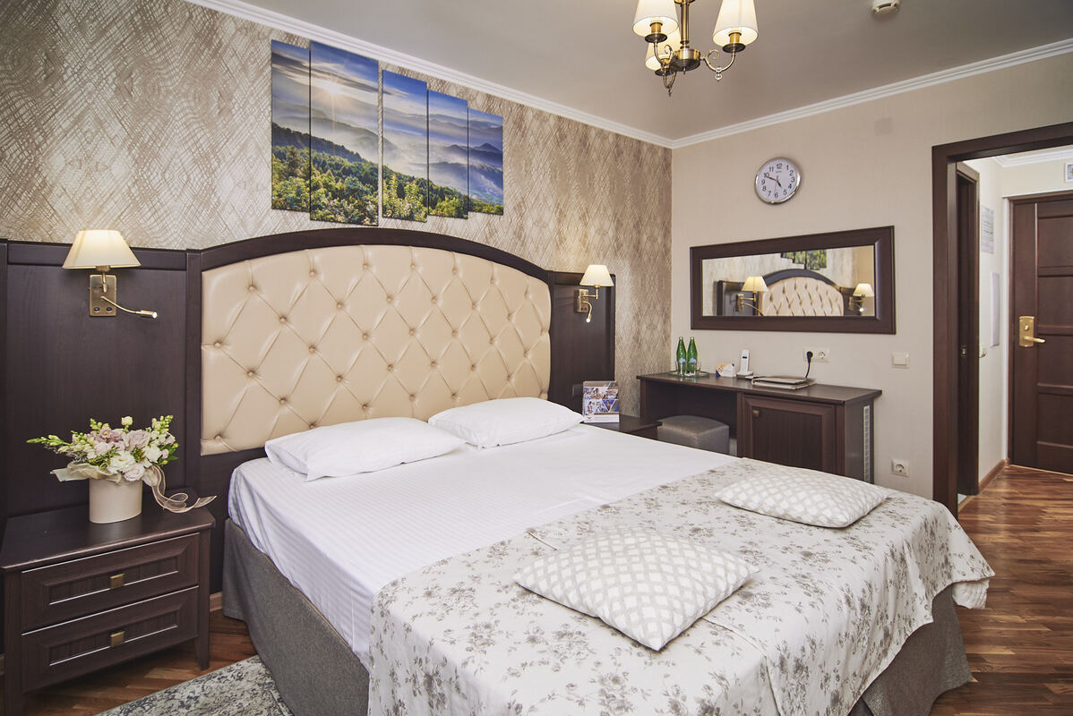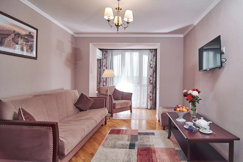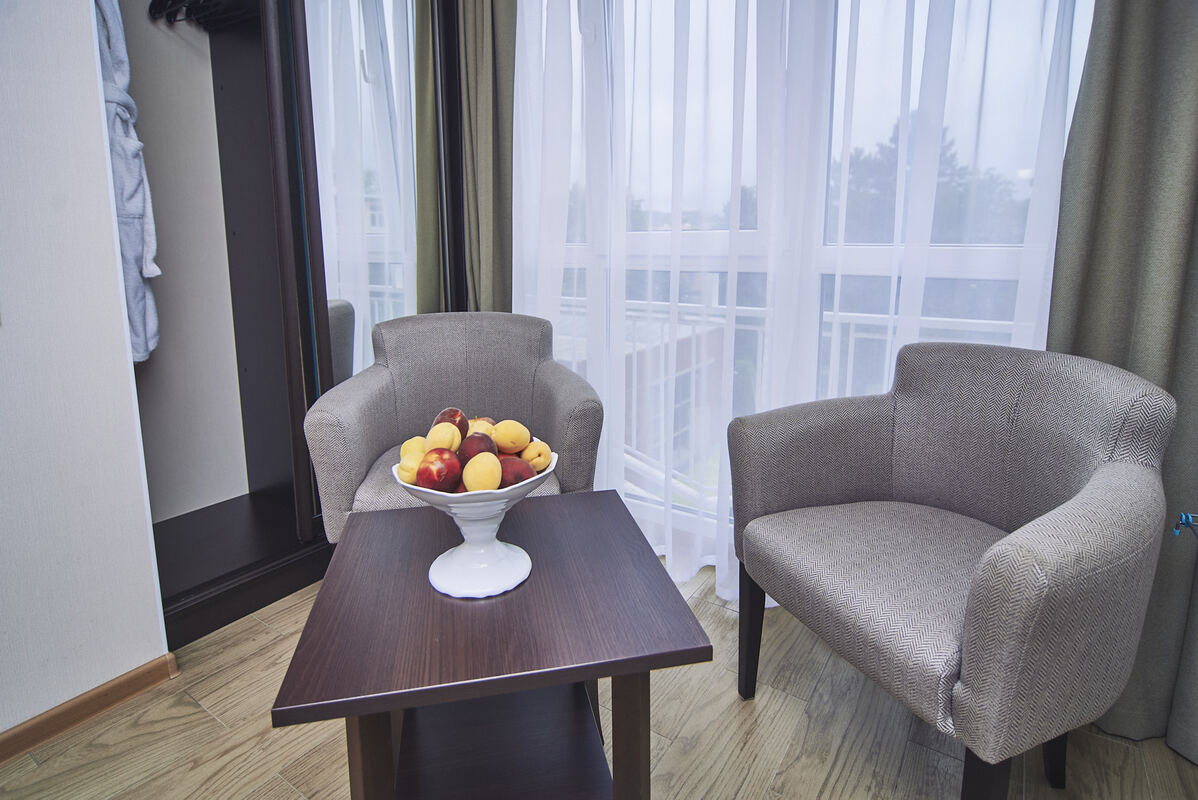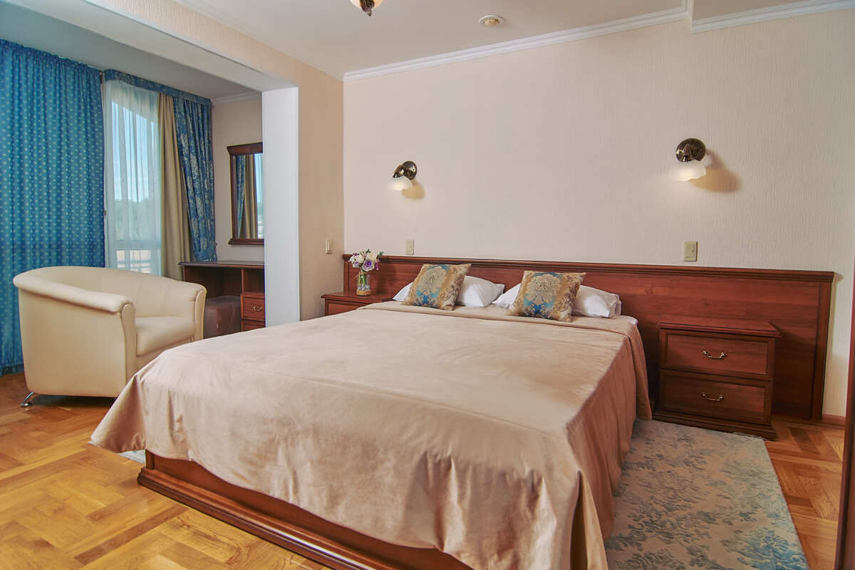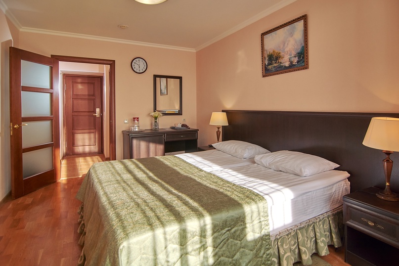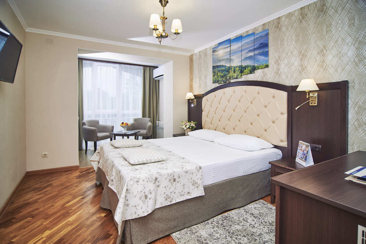 Были в санатории в ноябре 2025 года и хочу поделиться впечатлениями. Уборка номеров проходит каждый день, выносят мусор, пополняют гель и шампунь, полотенца и бельё меняют раз в три дня. В улучшенных номерах ещё выдают халаты. Сам номер в целом чистый, но видно, что пора делать ремонт. В шкафу сломана полка, об этом говорили при заезде, но так и не починили, паркет потёртый, перила на балконе облупились. Телевизор старенький, картинка рябит, обещали настроить через пару дней, но ничего не изменилось. Тем, кто берёт номер во двор, стоит знать, что там идёт стройка, днём довольно шумно, мы жили высоко, выше седьмого этажа, и это спасало. С лифтами отдельная история, их четыре, но ездят очень медленно, постоянно собираются очереди, поэтому чаще всего поднимались пешком. По медицине первый приём у терапевта назначили на 16 часов в день приезда, но из-за медленного приёма назначения получили только после ужина, в первый день процедуры вообще не успели начать. Терапевт работала неспешно и немного невнимательно, пришлось возвращаться, потому что часть процедур просто забыли назначить. Зато сам набор процедур радует, медперсонал вежливый и аккуратный. Питание отличное, без всяких нареканий, выбор блюд большой, всё вкусно и свежо, в столовой идеальная чистота. Пару раз во время обеда играла живая музыка, а шеф-повар лично выходил к гостям и спрашивал, всё ли нравится. В целом санаторий оставил приятное впечатление, хотя некоторые моменты немного расстраивали.