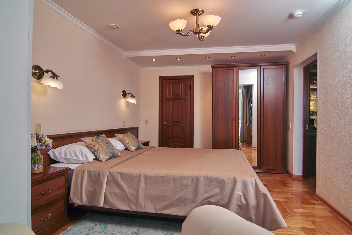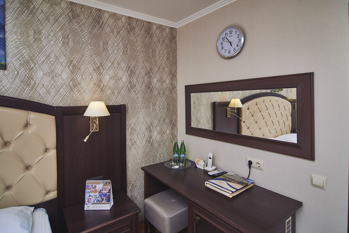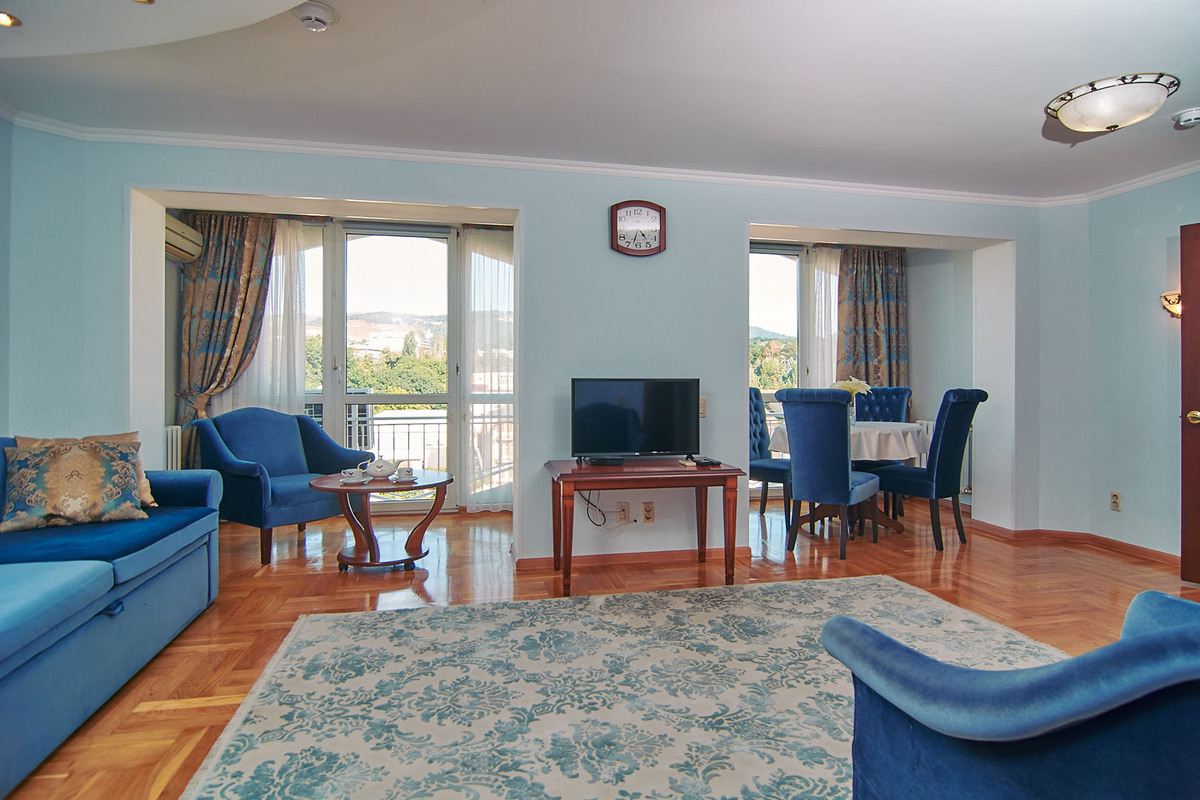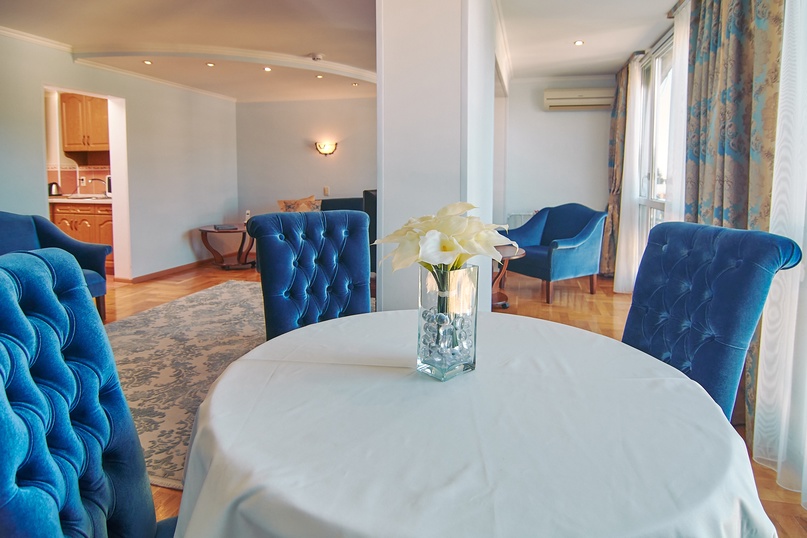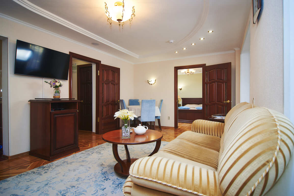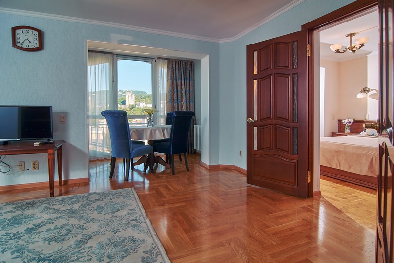 Были в санатории в ноябре 2025 года и хочу поделиться впечатлениями. Уборка номеров проходит каждый день, выносят мусор, пополняют гель и шампунь, полотенца и бельё меняют раз в три дня. В улучшенных номерах ещё выдают халаты. Сам номер в целом чистый, но видно, что пора делать ремонт. В шкафу сломана полка, об этом говорили при заезде, но так и не починили, паркет потёртый, перила на балконе облупились. Телевизор старенький, картинка рябит, обещали настроить через пару дней, но ничего не изменилось. Тем, кто берёт номер во двор, стоит знать, что там идёт стройка, днём довольно шумно, мы жили высоко, выше седьмого этажа, и это спасало. С лифтами отдельная история, их четыре, но ездят очень медленно, постоянно собираются очереди, поэтому чаще всего поднимались пешком. По медицине первый приём у терапевта назначили на 16 часов в день приезда, но из-за медленного приёма назначения получили только после ужина, в первый день процедуры вообще не успели начать. Терапевт работала неспешно и немного невнимательно, пришлось возвращаться, потому что часть процедур просто забыли назначить. Зато сам набор процедур радует, медперсонал вежливый и аккуратный. Питание отличное, без всяких нареканий, выбор блюд большой, всё вкусно и свежо, в столовой идеальная чистота. Пару раз во время обеда играла живая музыка, а шеф-повар лично выходил к гостям и спрашивал, всё ли нравится. В целом санаторий оставил приятное впечатление, хотя некоторые моменты немного расстраивали.