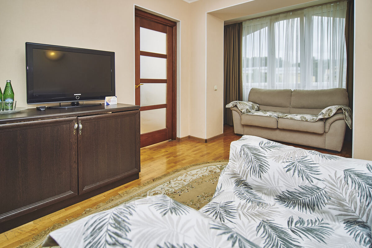 Номера требуют ремонта, мелкие поломки не чинят. Шум от стройки во дворе днём, медленно ездят лифты. Задержки с первичным приёмом у терапевта, невнимательность при назначении процедур. Старые телевизоры с плохой картинкой.