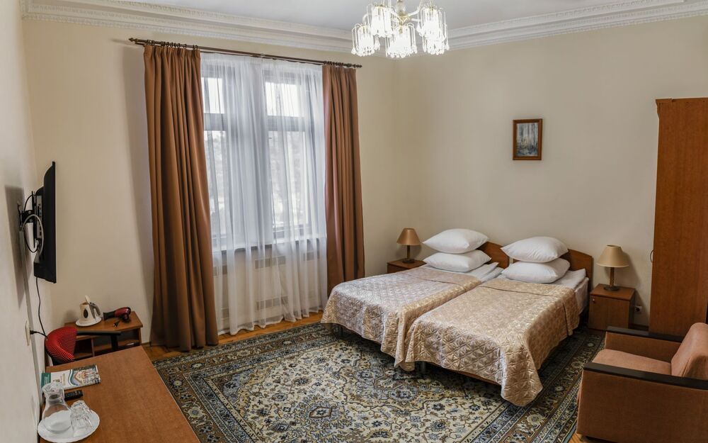 Оборудование: гладильная доска, кондиционер, мини-холодильник, набор посуды, телевизор, утюг, электрочайник.