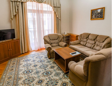 • Удобная транспортная доступность: санаторий расположен недалеко от железнодорожного вокзала и Нарзанной галереи, в нескольких минутах ходьбы от знаменитого Курортного парка — главной достопримечательности Кисловодска.