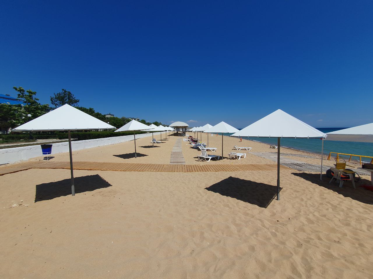 Первая береговая линия Чёрного моря: собственный песчаный пляж длиной 1000 м с пологим входом в воду.