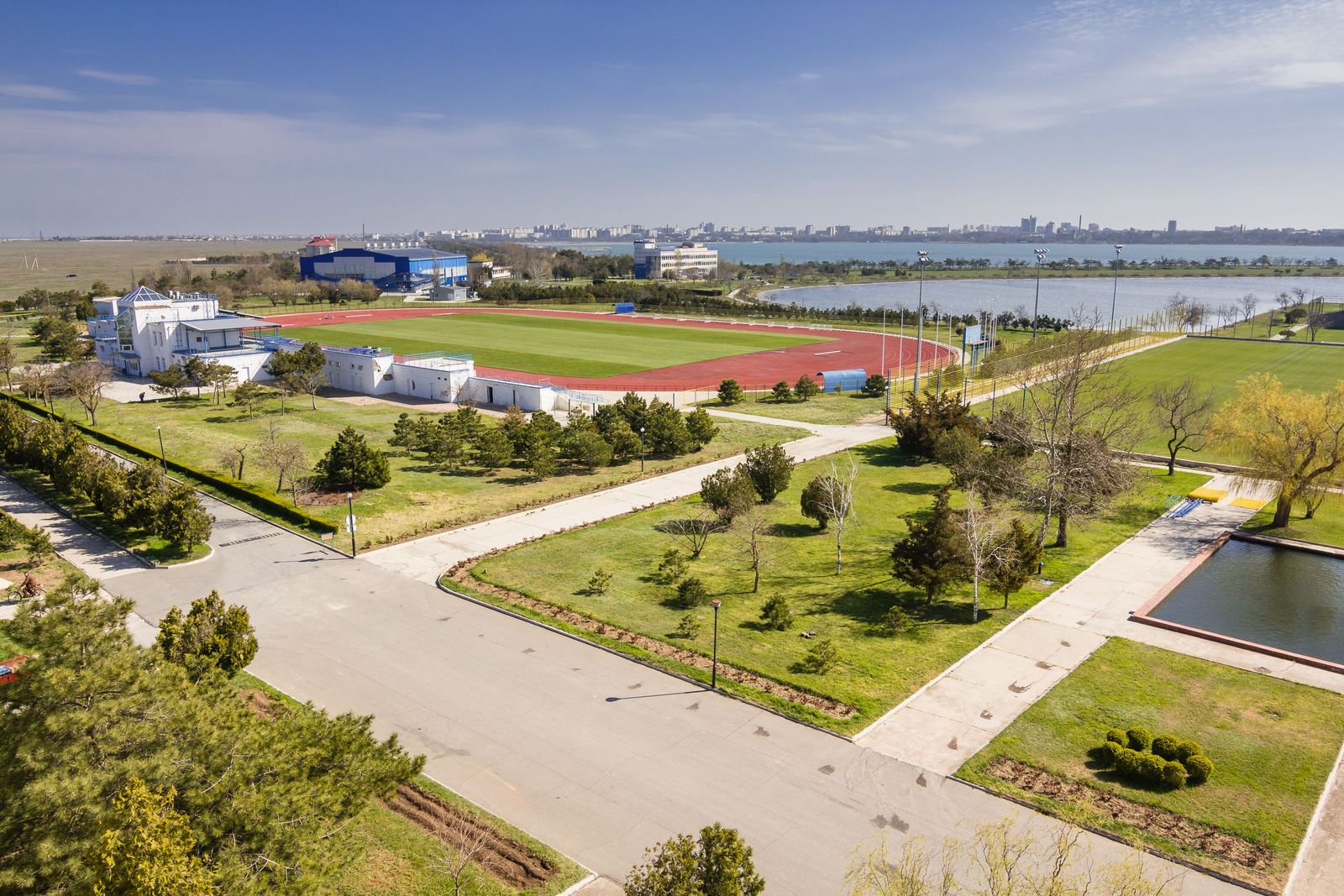 - Спортивный — 800 м до моря, рядом с озером
