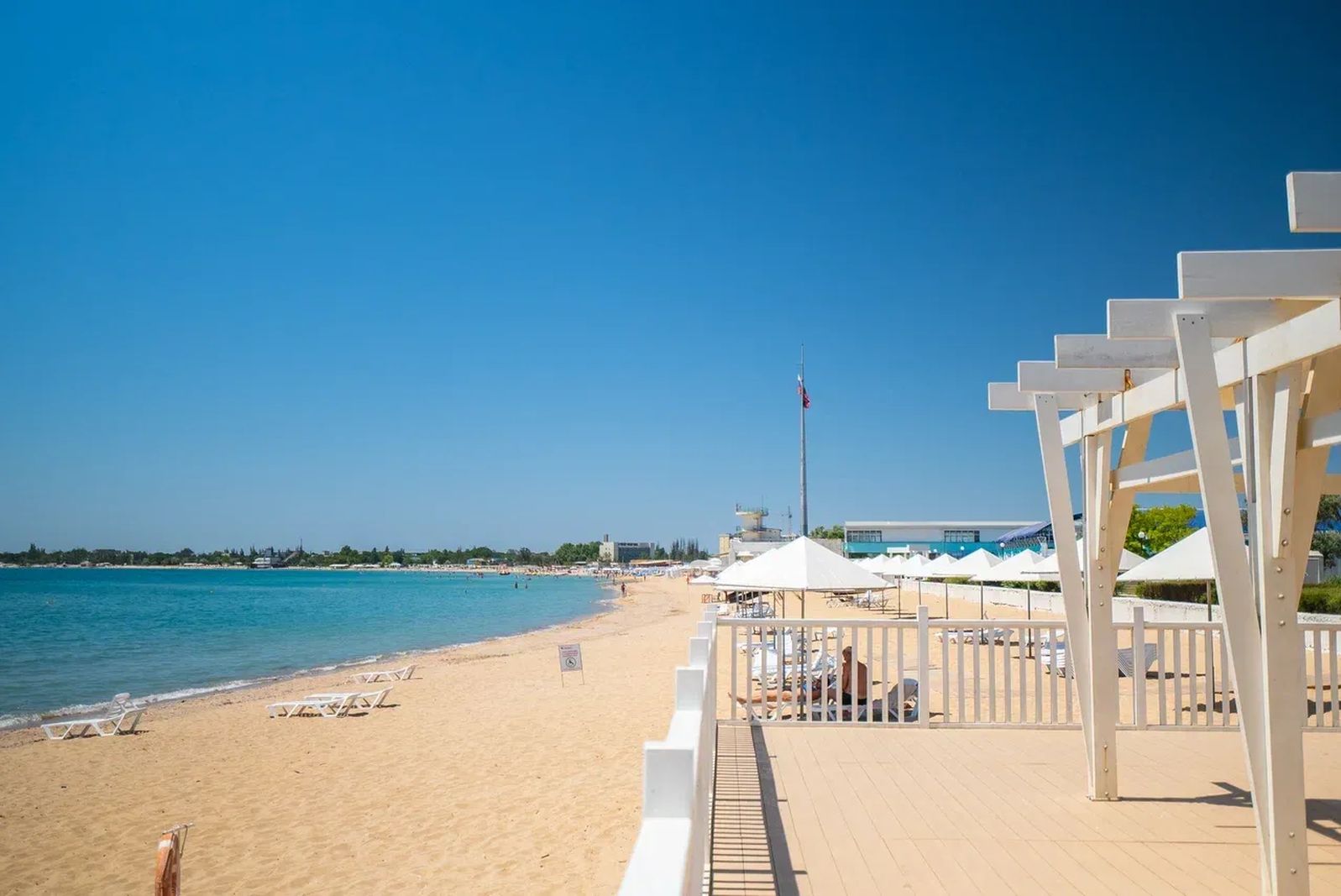 Пляж отмечен международной наградой за высокие стандарты качества воды и инфраструктуры.