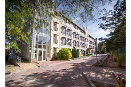 В целом понравилось все,придраться конечно можно к чему угодно. Санаторий хороший,лечебная база тоже хорошая. По территории санатория курсируют открытые машинки,если кому сложно ходить из корпуса в корпус на процедуры. Также из санатория ездиет маршрутка до набережной каждый час,тоже очень удобно. Жили в отремонтированном корпусе,номера хорошие,убирают. Из минусов наверно-шумоизоляция,ее нет)))но нам было не критично. Еда отличная по системе шведский стол. Сытые будете всегда. Лично я не все успела попробовать,что предлагали,а вот муж с братом конечно накрывали прям наш стол))))и не доедали)))) В самом санатории есть экскурсии,сувенирные лавка с нормальными ценами,а может и даже дешевле. Вечерами анимация как для взрослых,так и детей. Даже есть типа алкогольного магазина. В принципе можно даже не выходить с территории,все есть. Хороший бассейн,подогреваемый. На территории есть мини детский сад (вроде платный,но это не точно))) и детская комната в здании столовой. Есть настольный и большой теннис. Сама территория утопает в зелени. Многие люди с кем знакомились,говорят ездиют сюда из года в год. Цена в не сезон просто сказка. Нам повезло с погодой в конце ноября +21. Рекомендую.