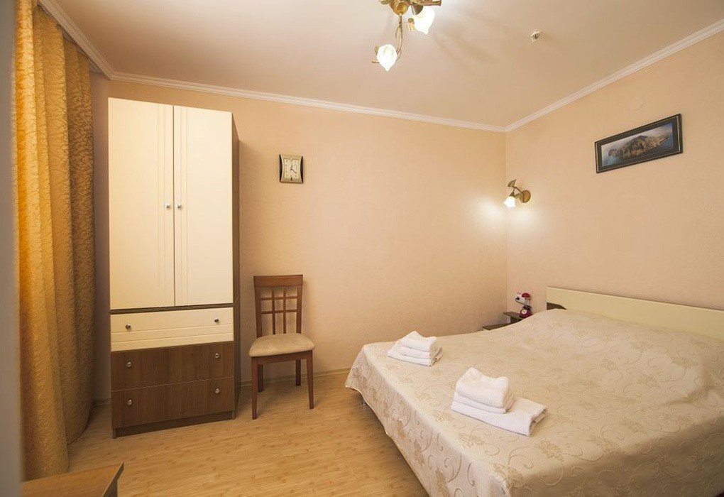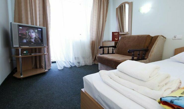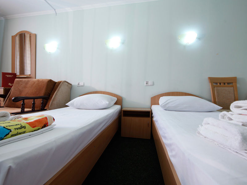 Сервис: Наборы полотенец, одноразовые тапочки, мини-набор косметических средств, ежедневная уборка номера.