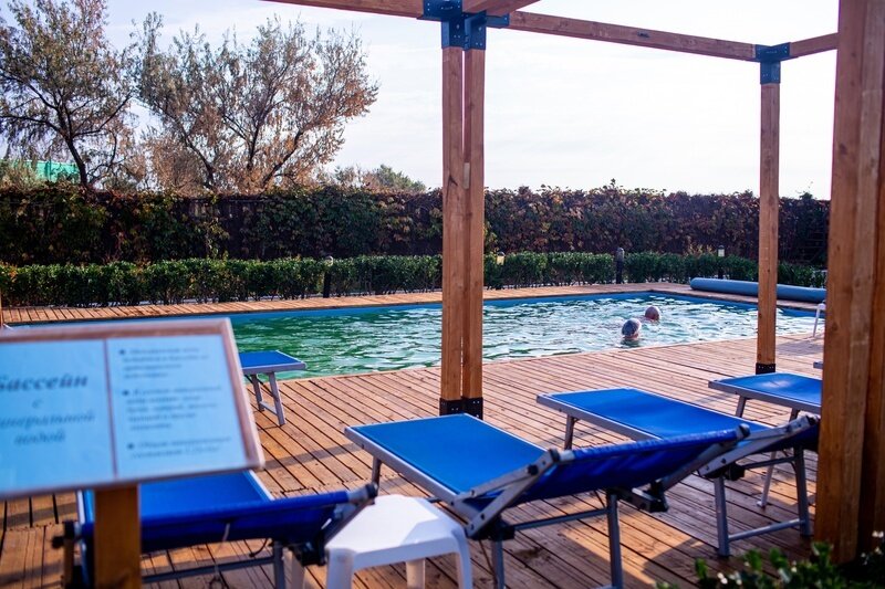 Открытый бассейн с минеральной водой: размер 5×10 м, температура +28–+29°C, заполнен на 100 % водой из собственного источника
