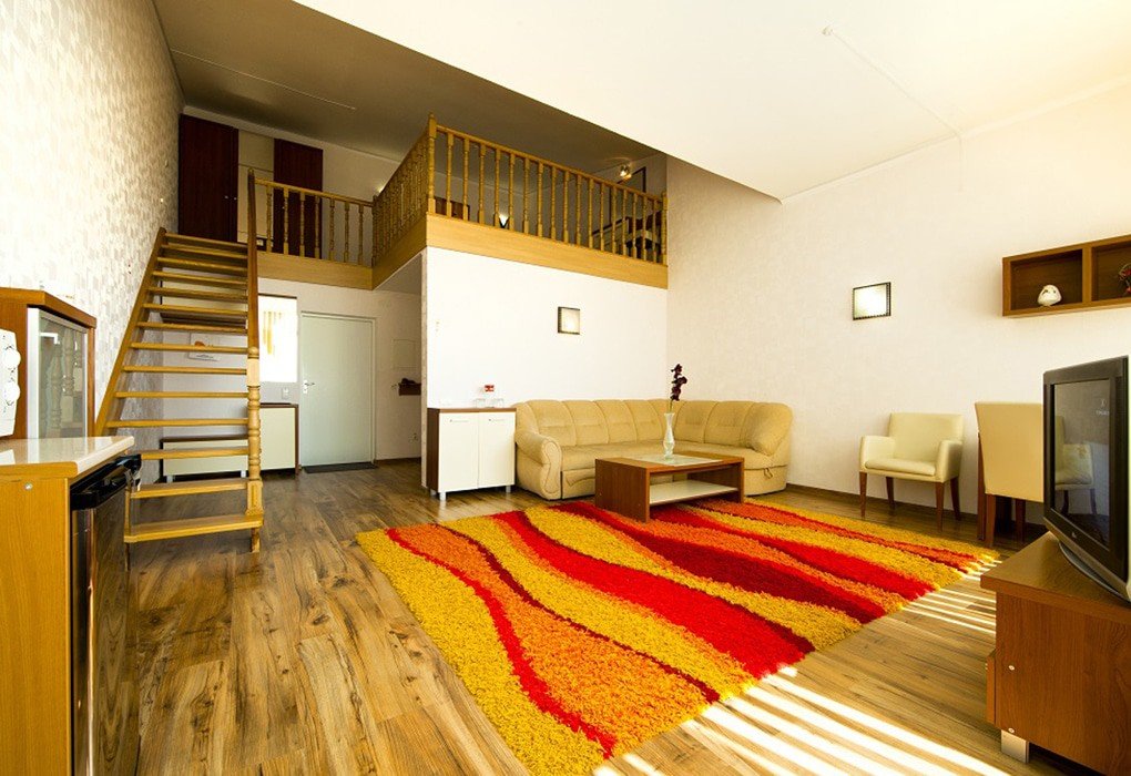 Во всех номерах санузел с ванной или душем, кондиционер, телевизор, холодильник, необходимая мебель. В апартаментах и дуплексах обустроена мини-кухня. Многие номера с балконами.