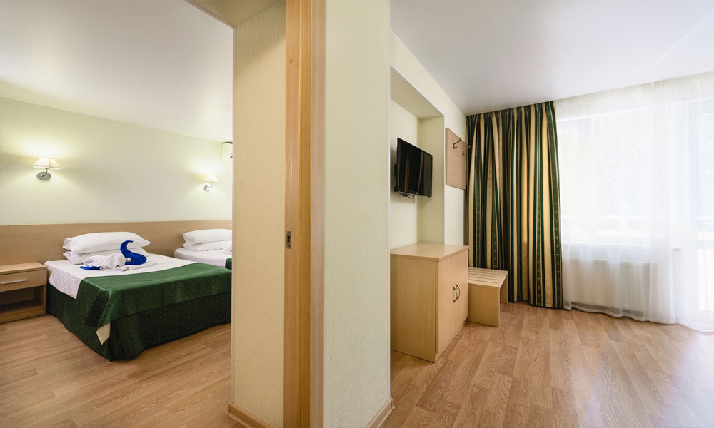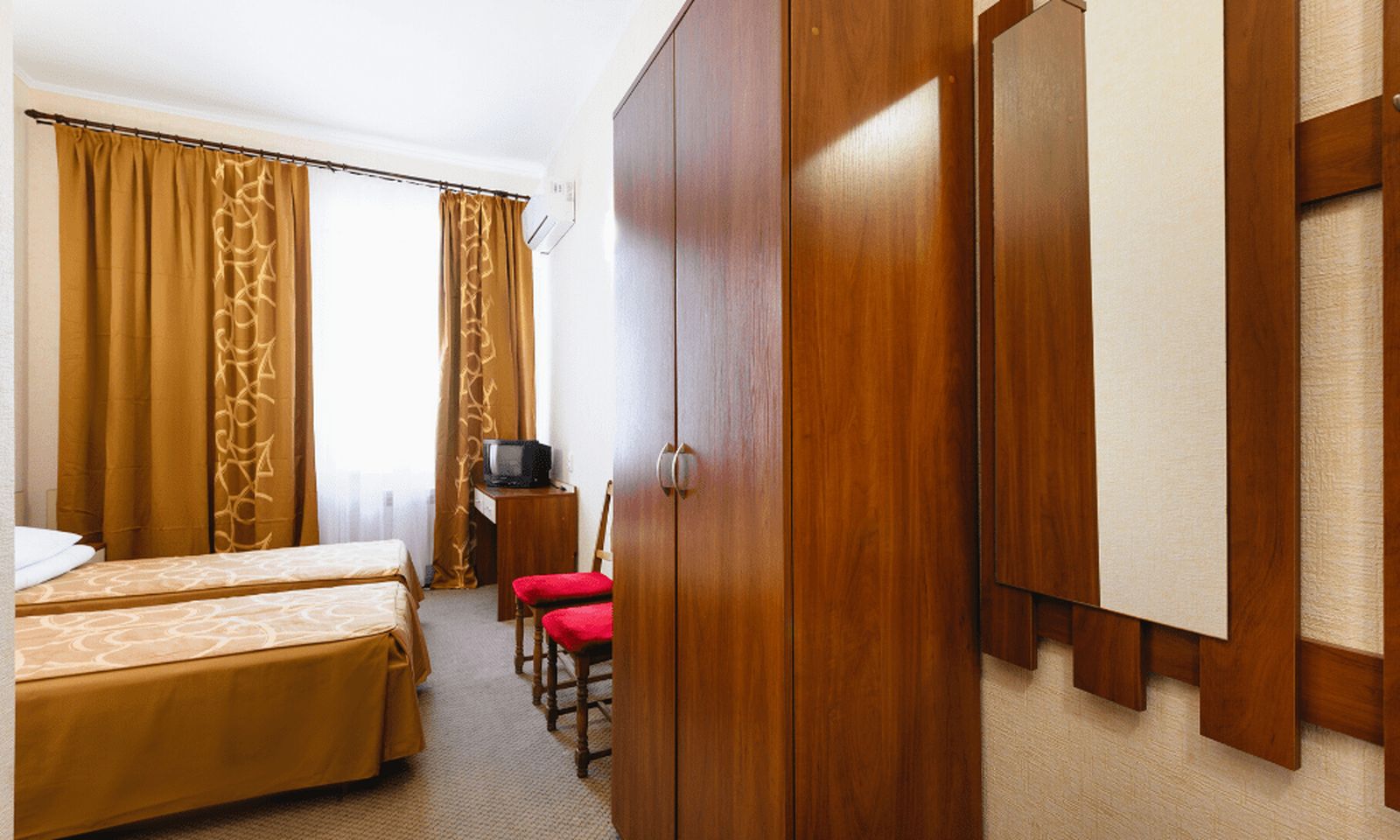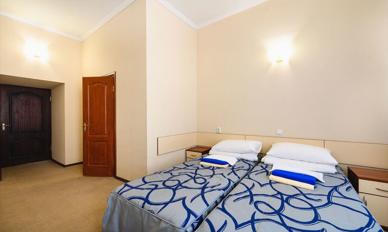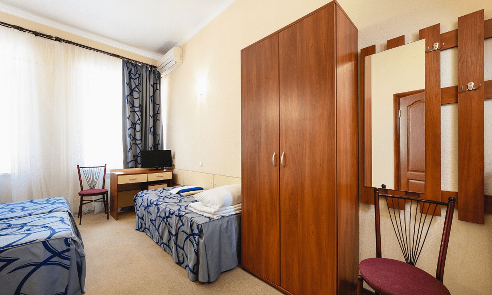 Мебель: Две раздельные односпальные кровати, шкаф, тумбочки, еврораскладушка.